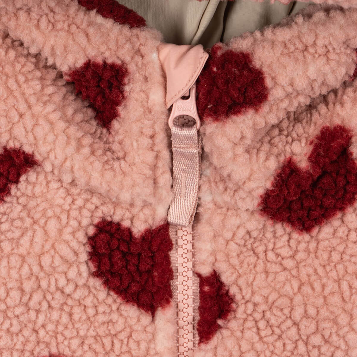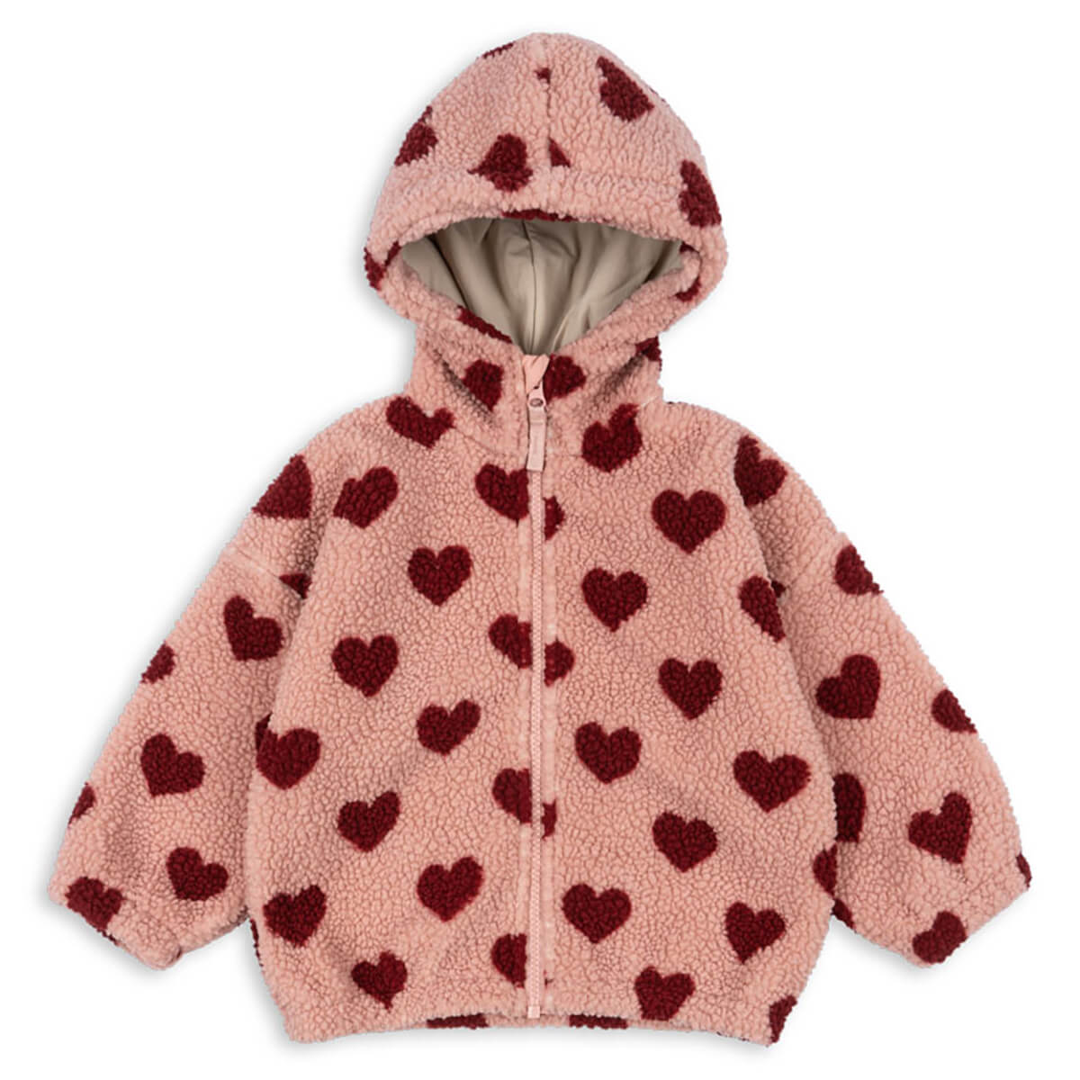 Jody Hooded Jacket by Konges Sløjd. Warm teddy jacket with soft inside fleece. Designed with a full zip closure, a warm hood, and elasticated cuffs.