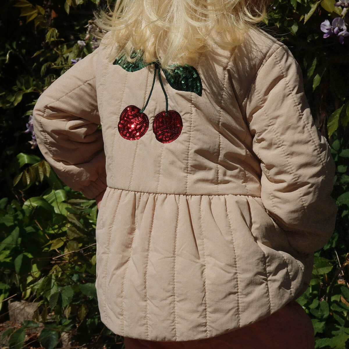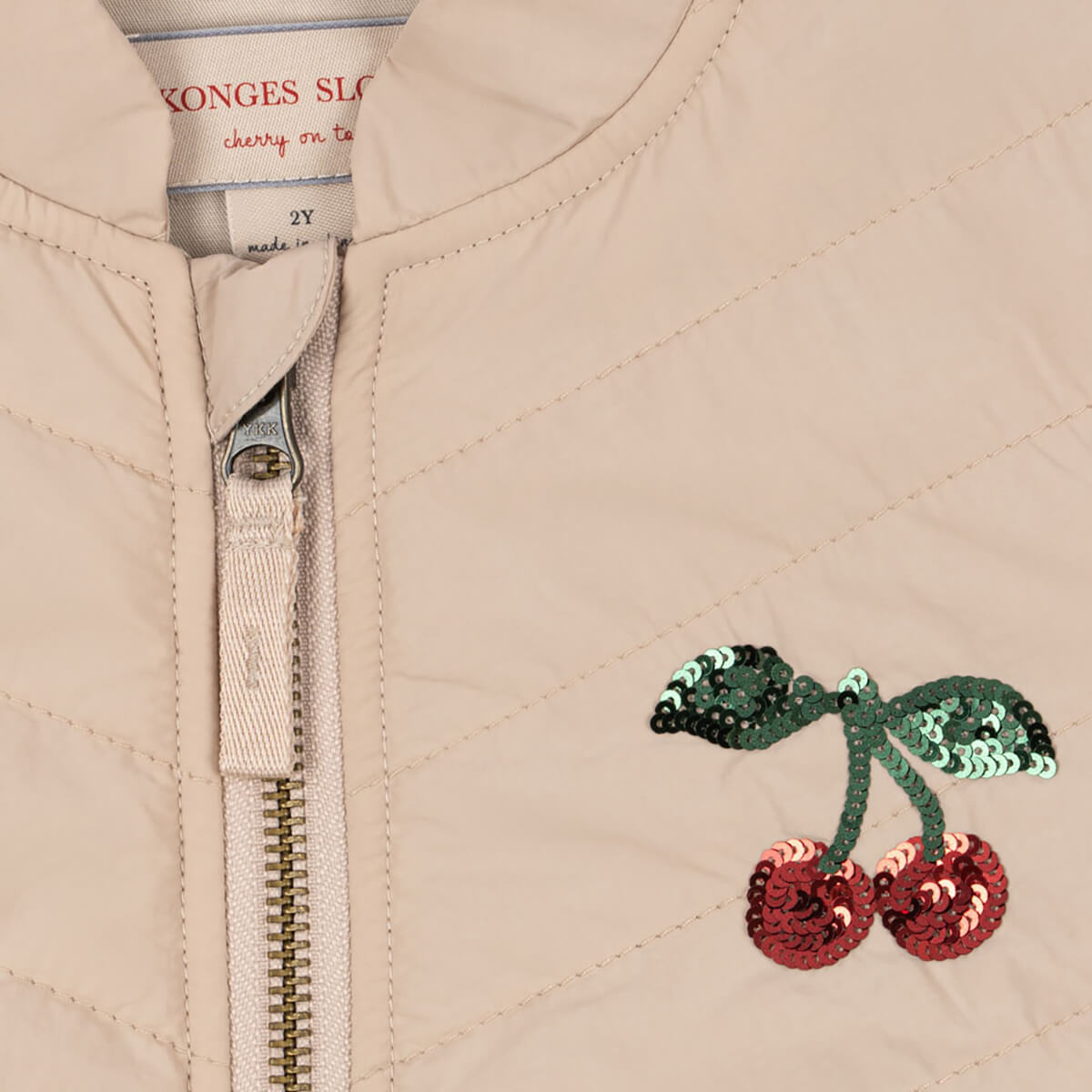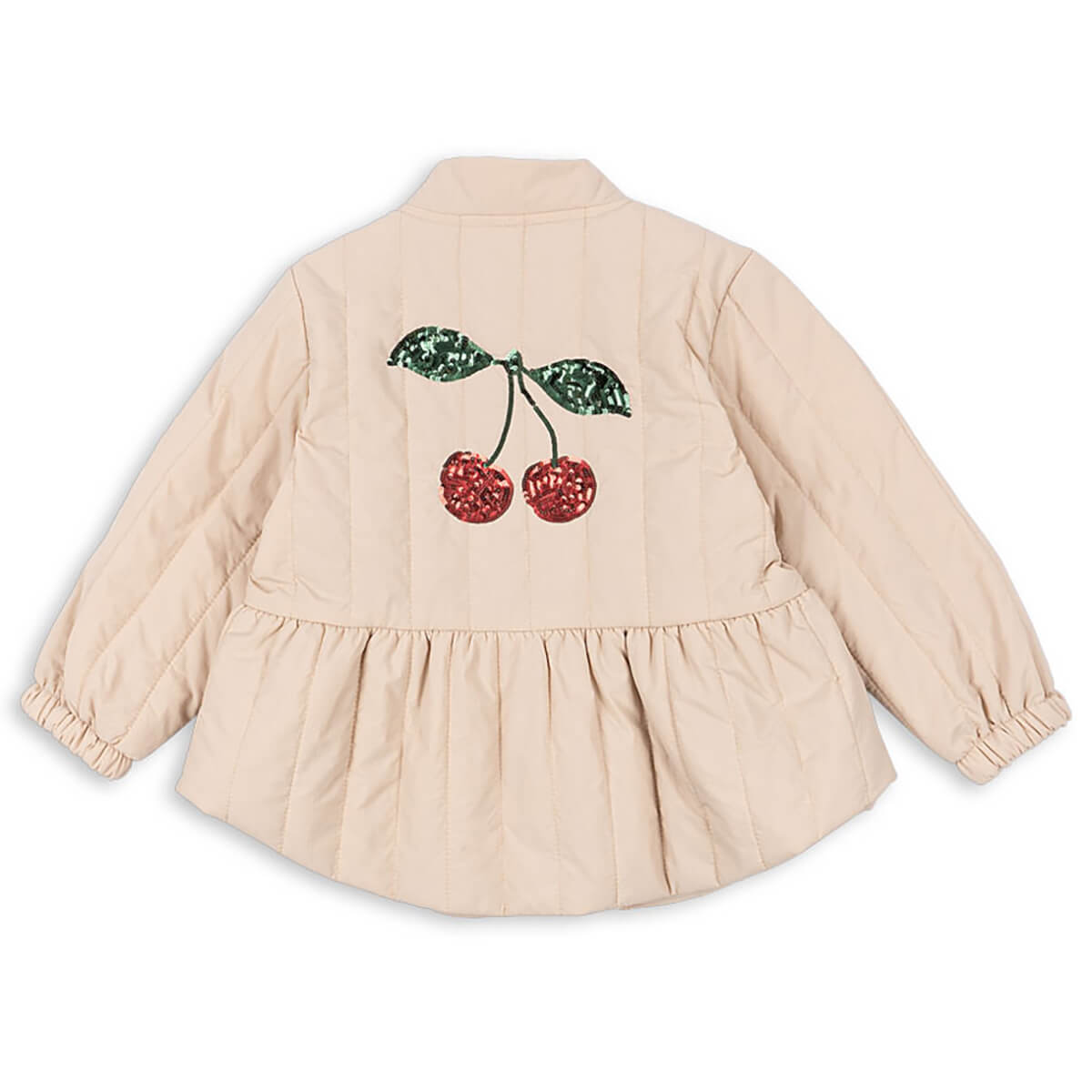 Juna Sequin Bomber Jacket by Konges Sløjd. Warm thermo jacket with warm padding and effective insulation properties that make it both wind-resistant and water-repellent. Juna is designed with a more fitted silhouette and a decorative skirt effect in the body. Raised collar and sturdy zipper closure as well as practical side pockets.