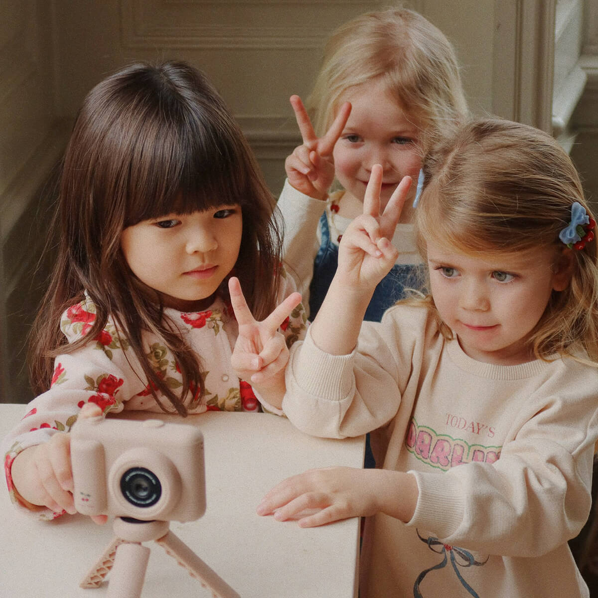 My First Camera by Konges Sløjd. Multifunctional digital camera with a high-definition preview screen that allows children to instantly see their photos. Features a fun selfie function, video preset, and three pre-installed games, as well as a practical tabletop tripod that makes it easy to take selfies. Designed for hours and hours of fun where your child can capture unforgettable moments with their friends and family.