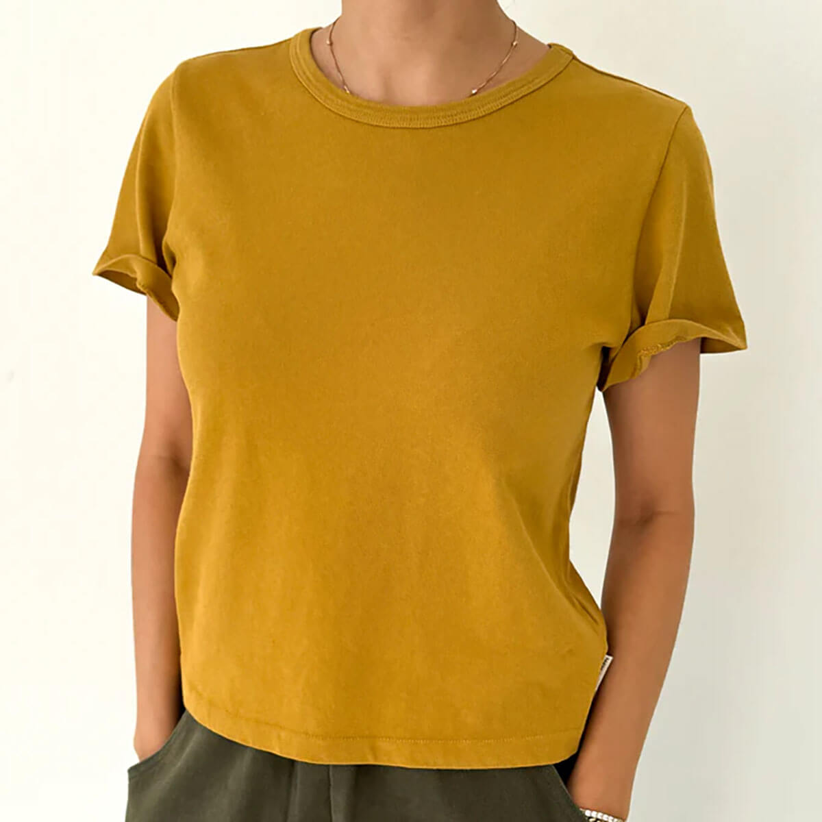 The Little Boy tee by Le Bon Shoppe. The quest for the perfect tee ends here. The first of its kind, The Little Boy Tee uses medium-weight 100% cotton premium jersey blend for a flattering slim fit with just the right amount of stretch. It features baby ribbed details and maintains a suitable cropped length. Consider this little tee the perfect piece to remain a cherished part of your wardrobe season after season. Garment washed and dyed, each tee shows off a beautiful natural worn-in look.