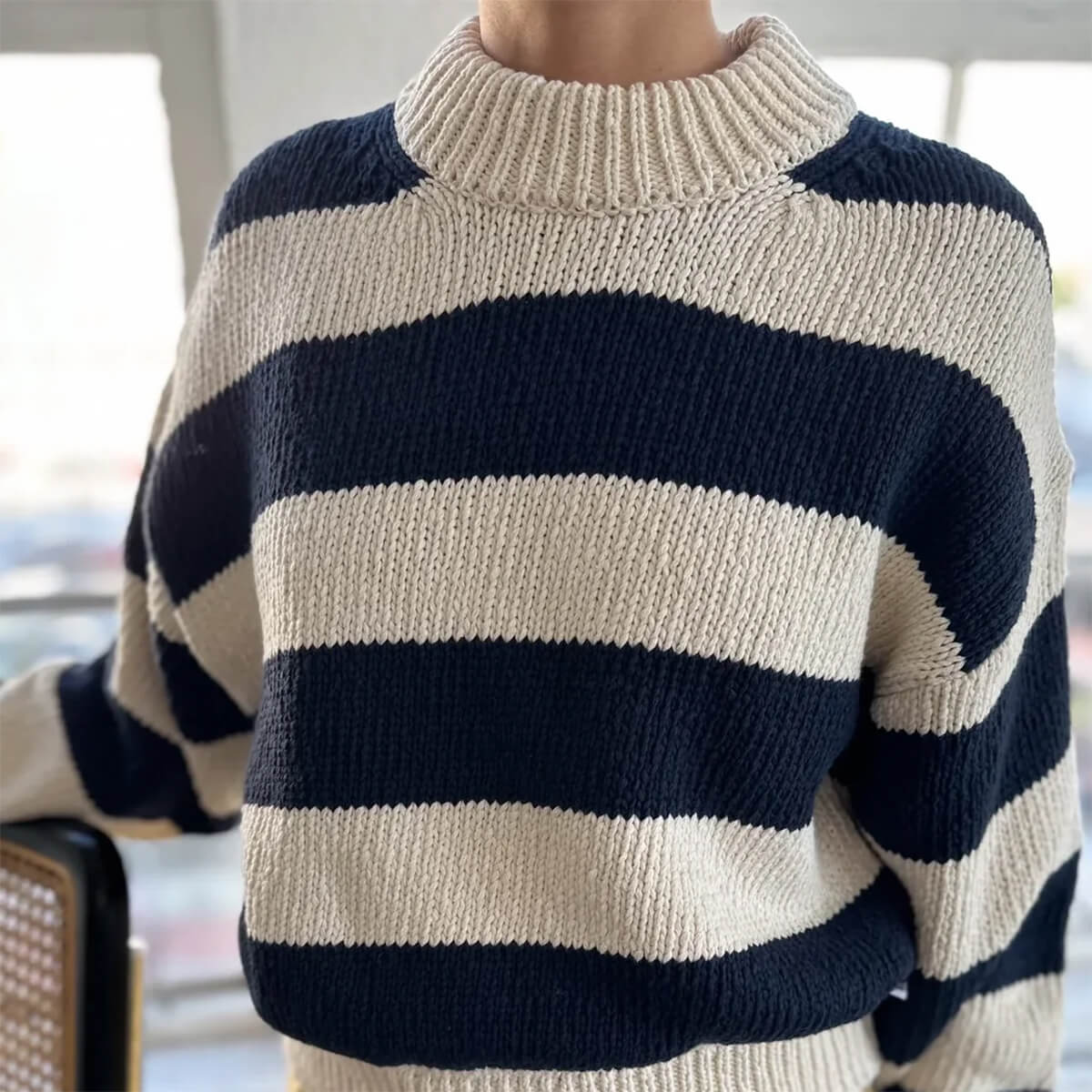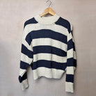 Zoe Cotton Sweater in Navy Stripe by Le Bon Shoppe