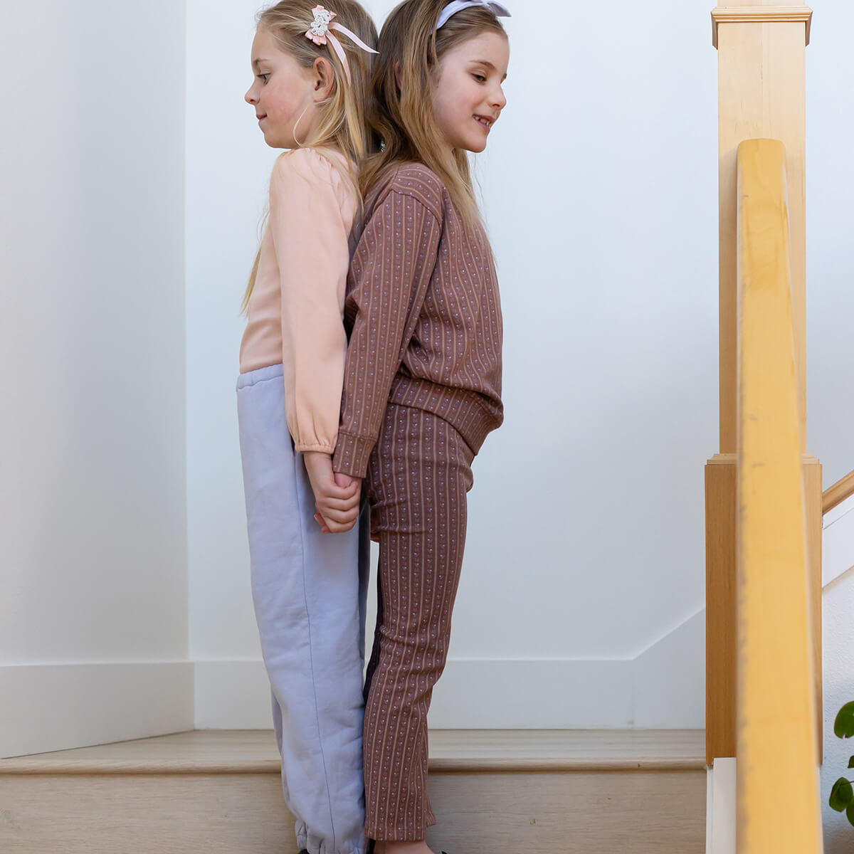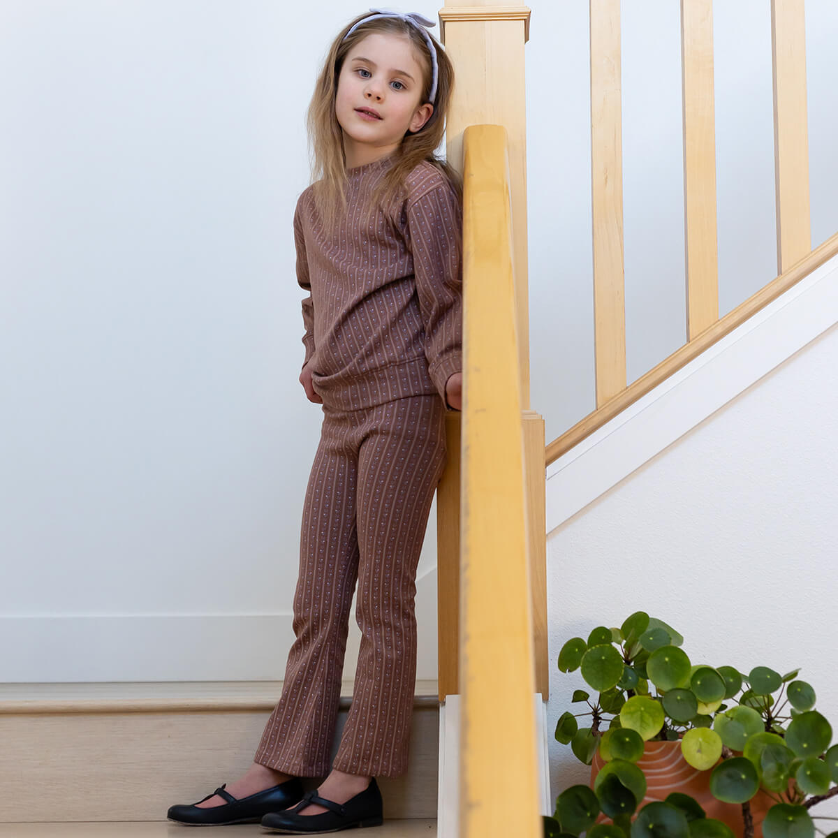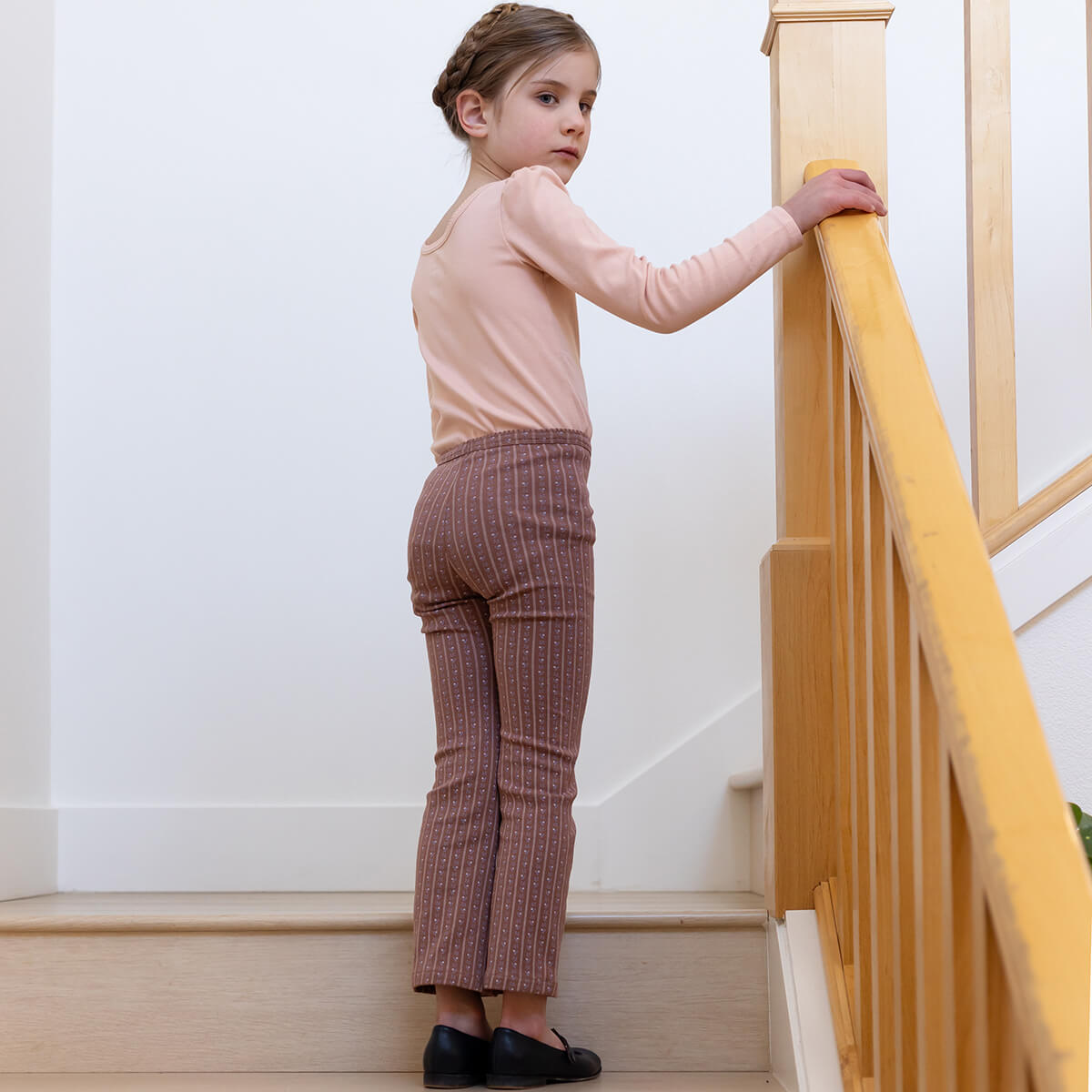 Pima Flare Pant by Iver & Isla. Flared leggings made from buttery soft medium weight pima jersey. Dainty picot chain stitching detail at waist.