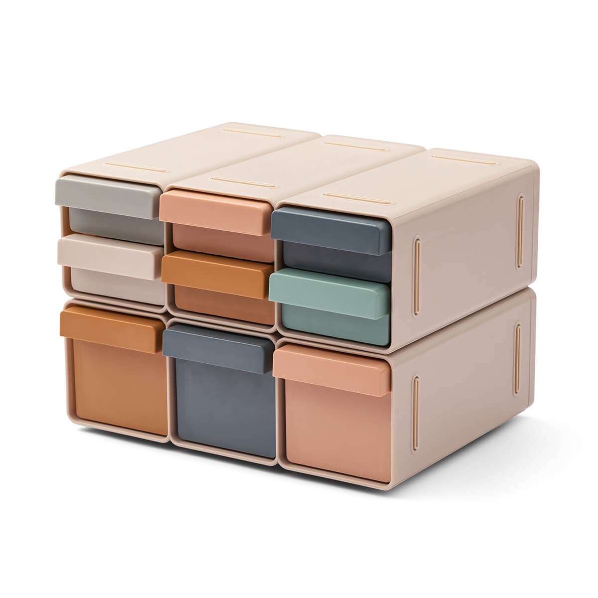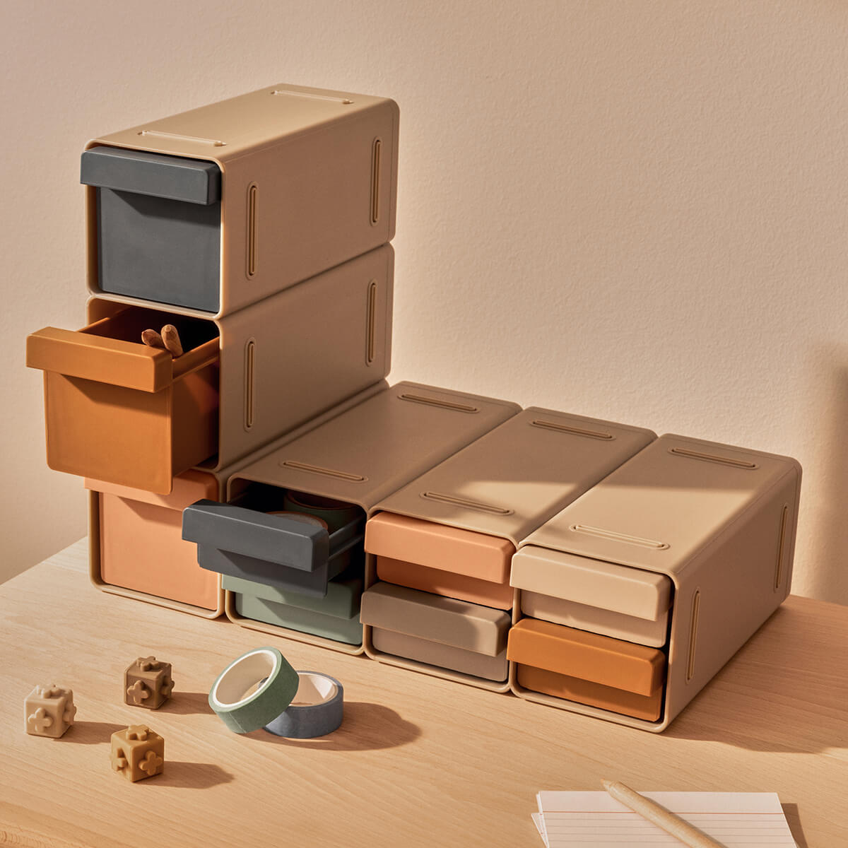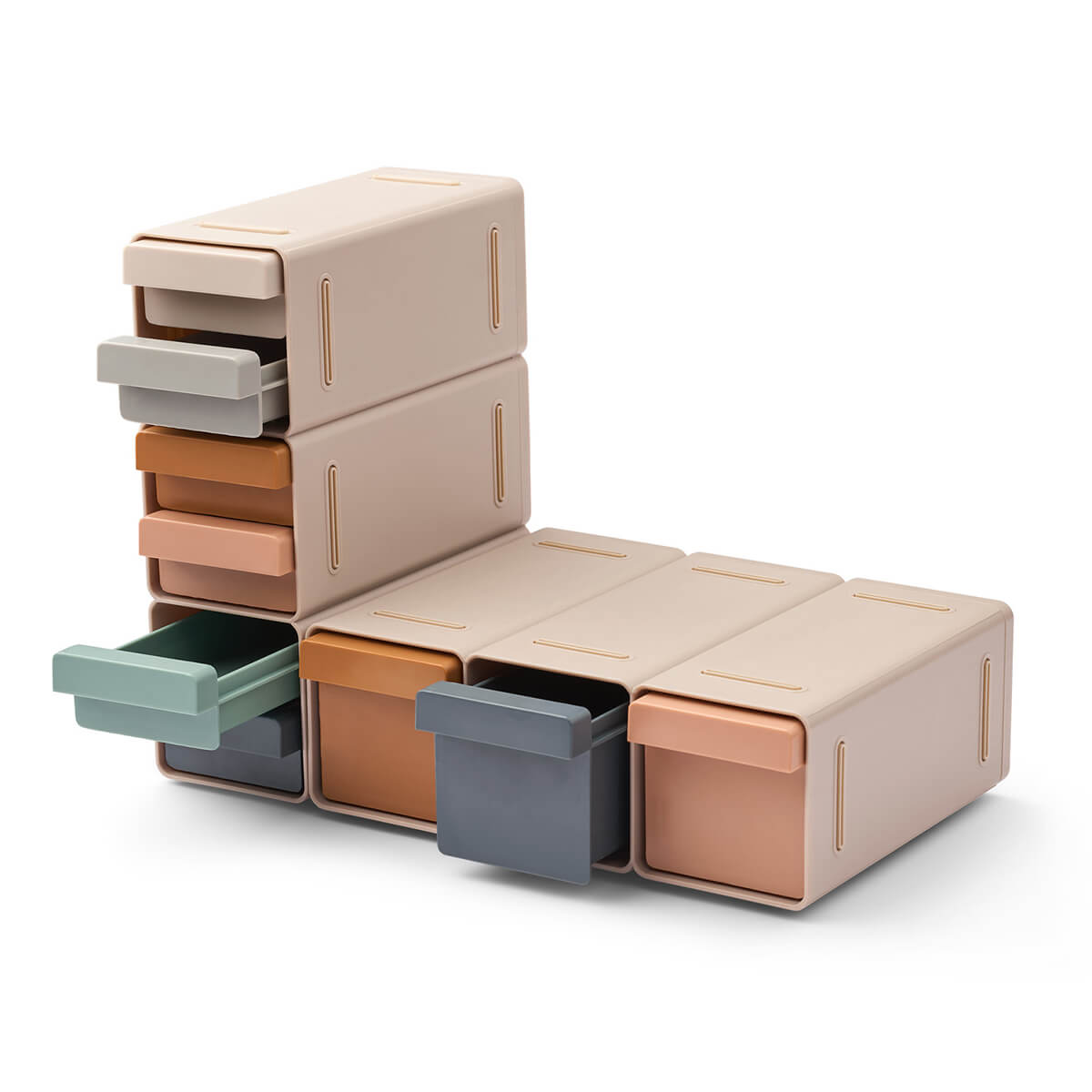 Kylian Storage System by Liewood. A stylish and versatile storage solution designed to grow with your child’s creativity. The modular system allows for endless configurations — whether stacked, expanded, or wall-mounted. With a secure snap-lock mechanism, Kylian is perfect for organising trinkets, craft supplies, and school essentials.