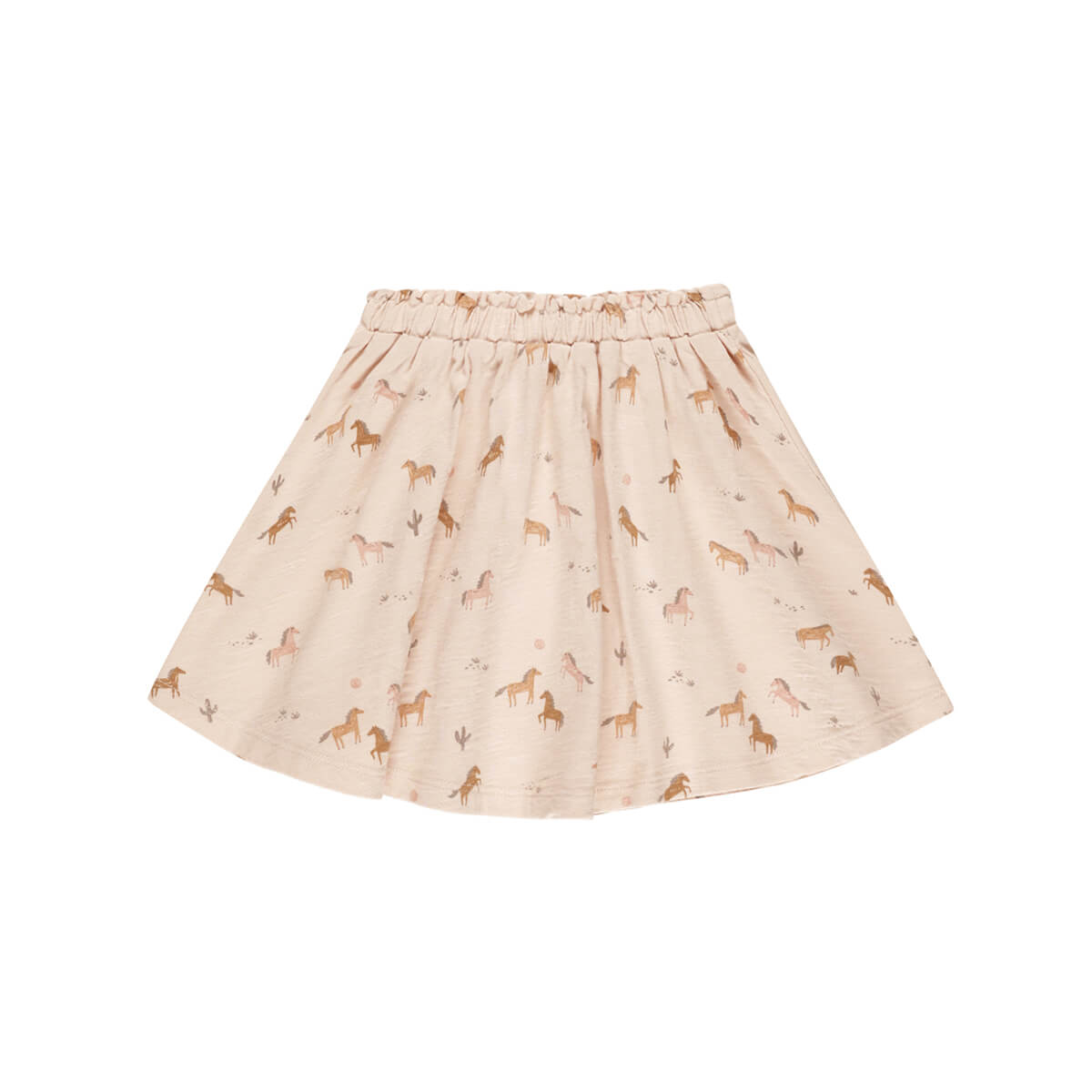 Mae Skirt by Rylee and Cru. A short skirt with a paper bag waist and all over horse print.