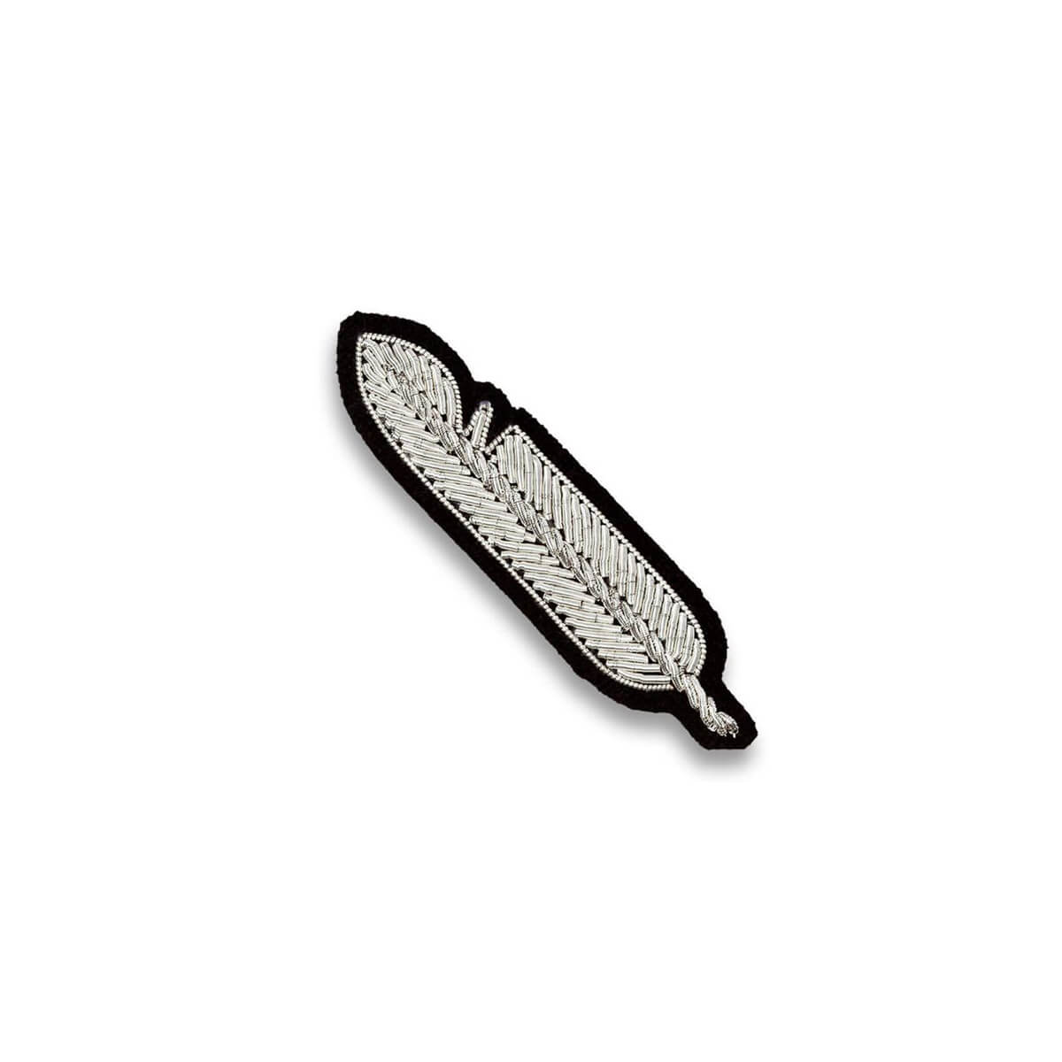 Silver Feather Hand Embroidered Brooch by Macon & Lesquoy. Carry your luck with you with this pretty brooch. Pin to your jacket, bag or shirt.