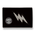 Silver Lightening Bolt Hand Embroidered Brooch by Macon & Lesquoy. Electrify your outfits with this small silver lightening bolt brooch. Pin it on your jacket, bag, lapel or anywhere!