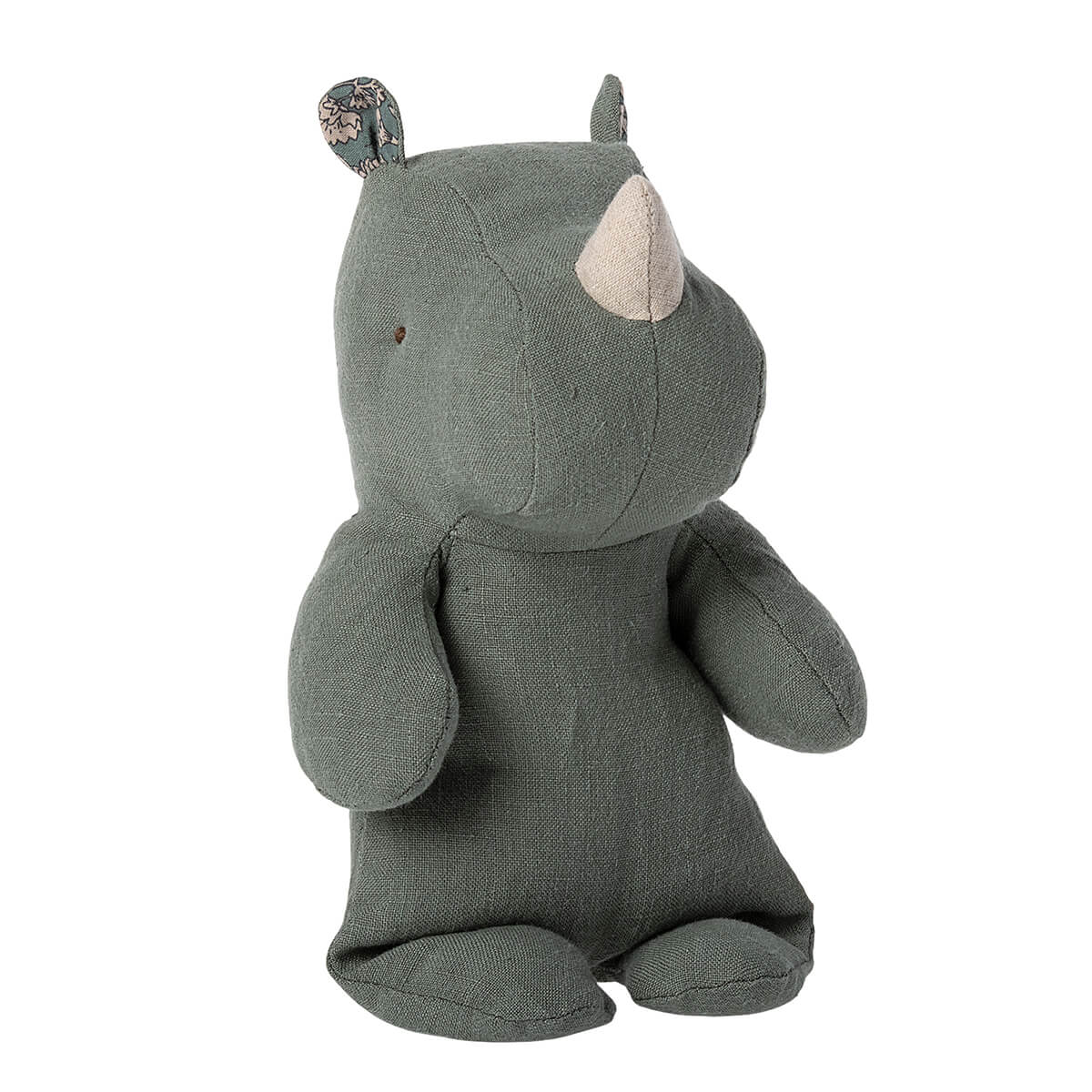 Safari Friends Rhino by Maileg. Safari friends are made in the softest fabric and come in great colors. They can sit by themselves as they have beans in their bottom. They are just waiting for you to come and hug them.