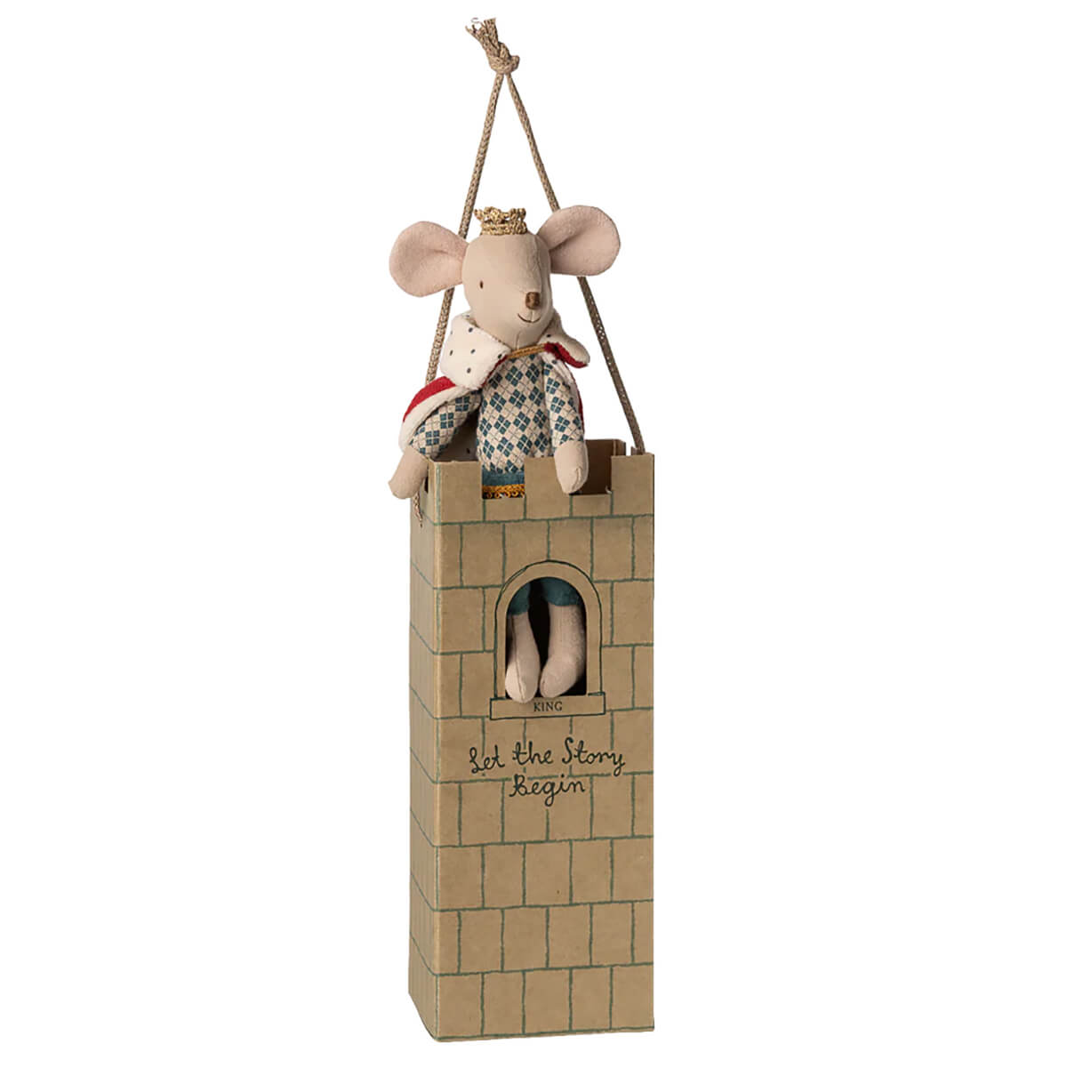 Dad King Mouse by Maileg. The King mouse in size Dad is ready to be a host in his Castle. He wears a cape and crown, and fits perfectly into the Castle Hall.