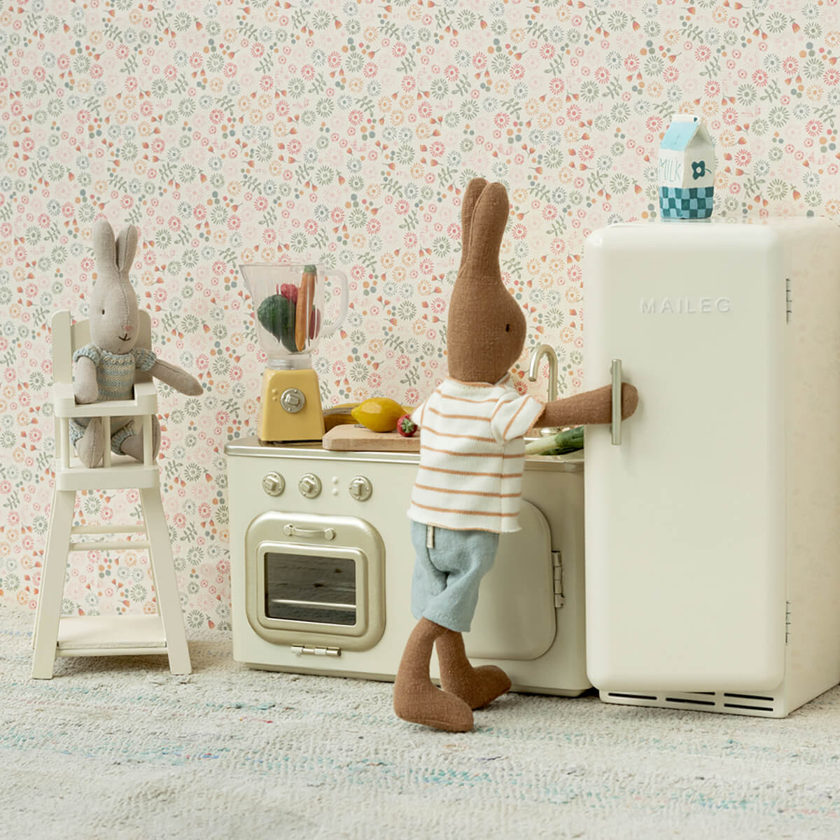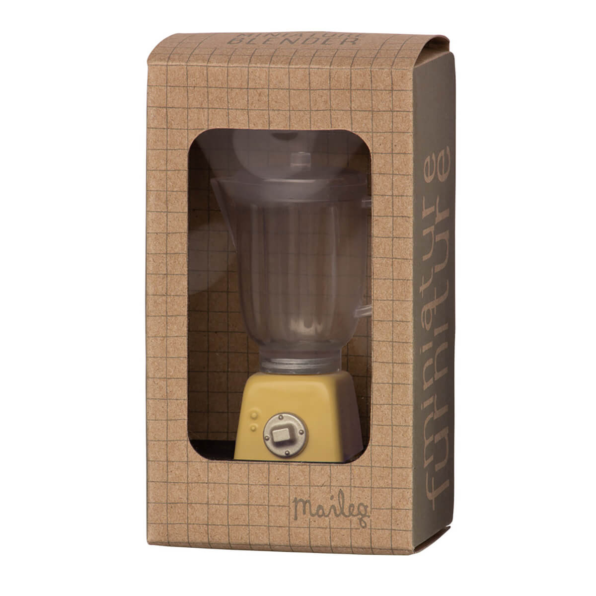 Miniature blender by Maileg.  All the small friends also need a smoothie on the go! The Miniature Blender is perfect for hours of play. You can take the jug off the blender and the lid as well.