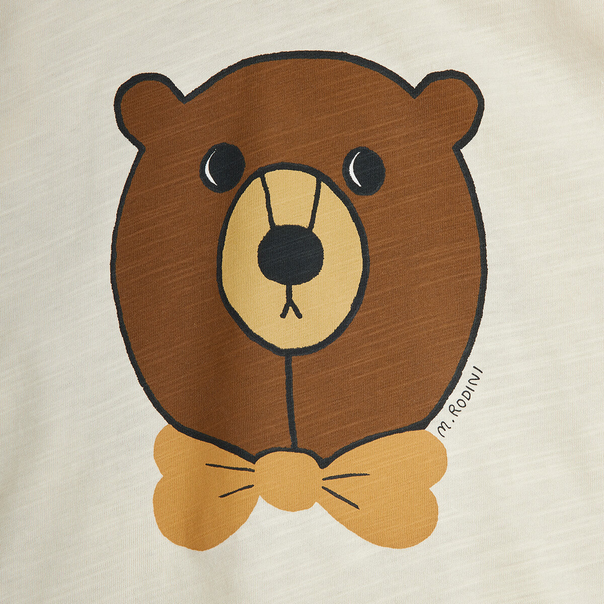Bear Tee by Mini Rodini. Off white t-shirt, featuring a ribbed neck and large bear design.