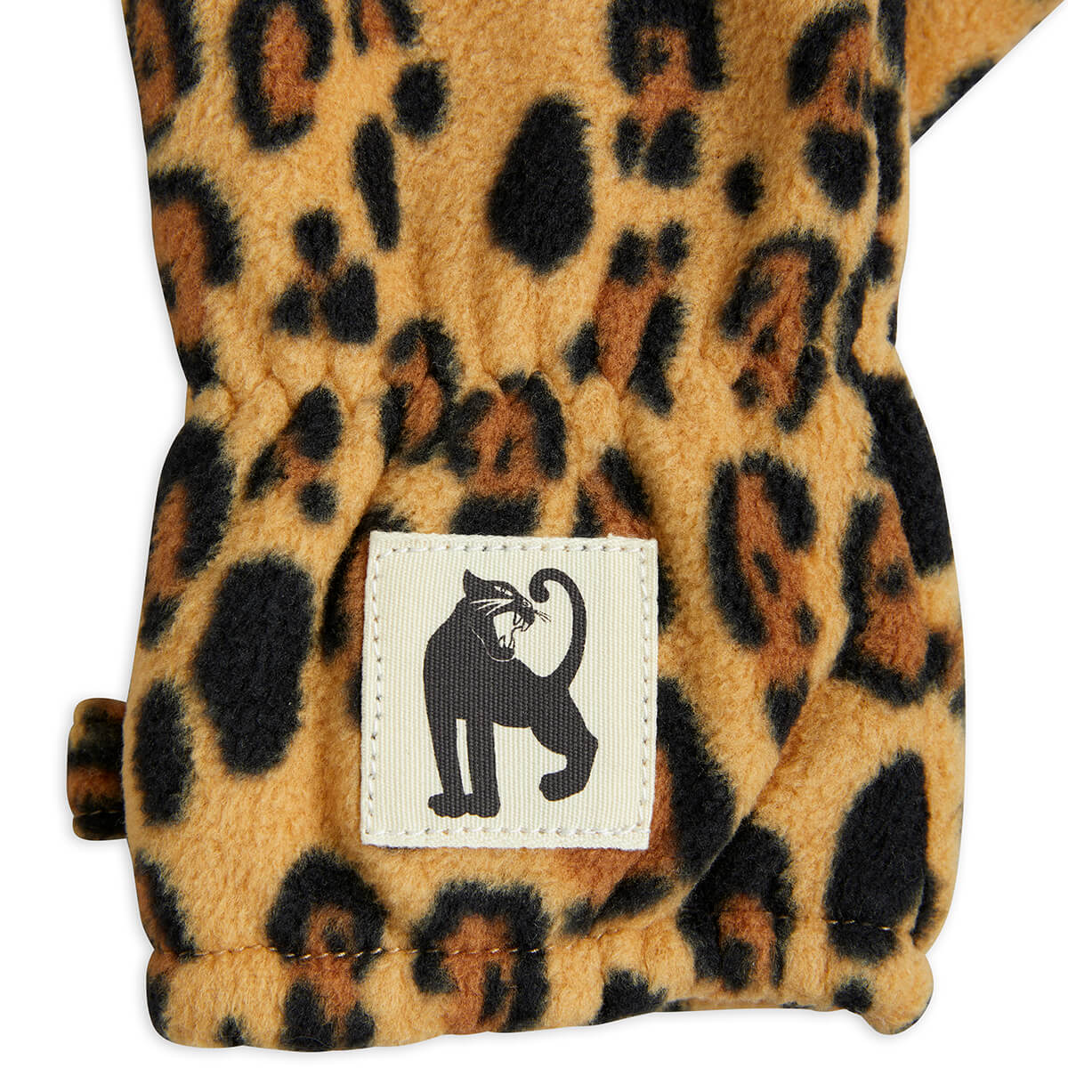 Leopard Fleece Mittens in Brown by Mini Rodini