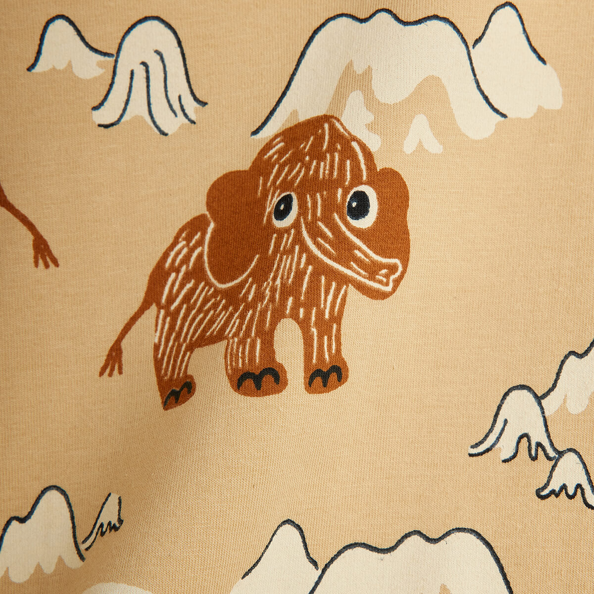 Mammoth AOP Leggings by Mini Rodini. Beige cotton pants featuring an elasticated waist, slim fit and ankle length design.