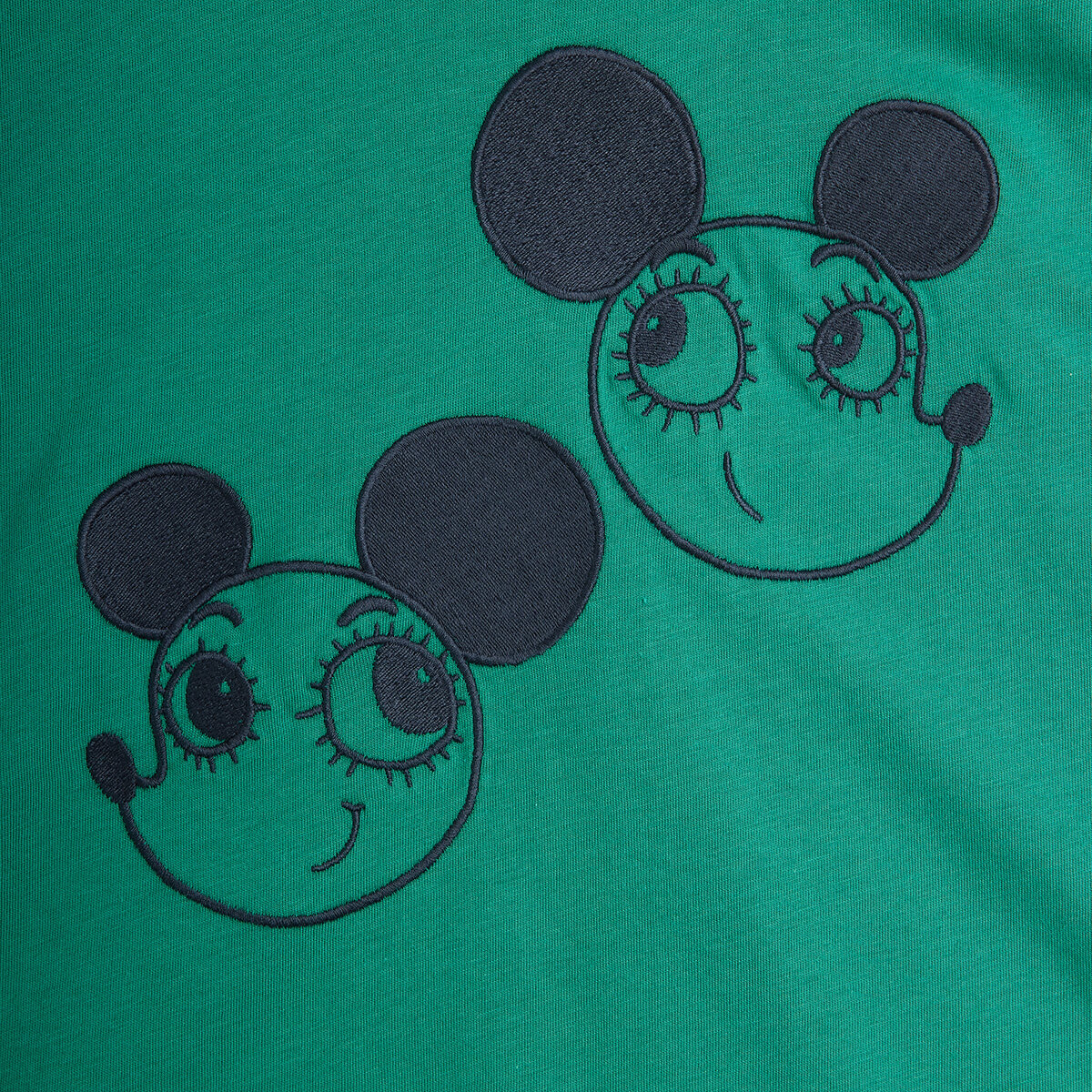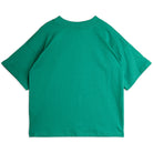 Ritzratz Embroidered Tee by Mini Rodini. Green t-shirt made from 100% organic cotton designed with a relaxed fit, dropped shoulders and ribbed edges.