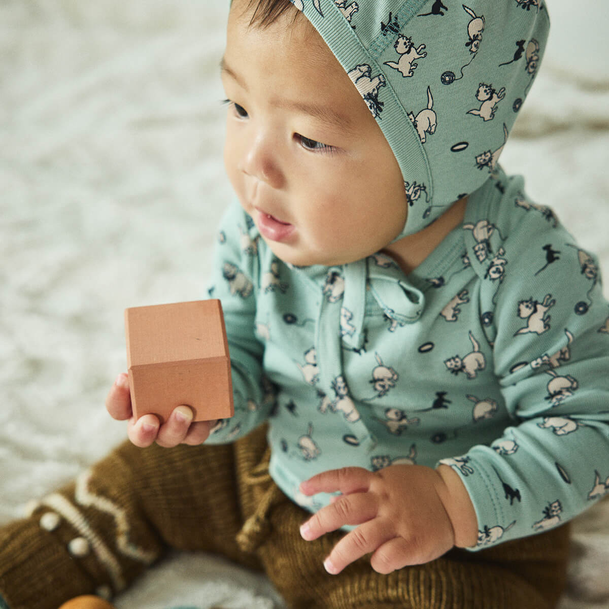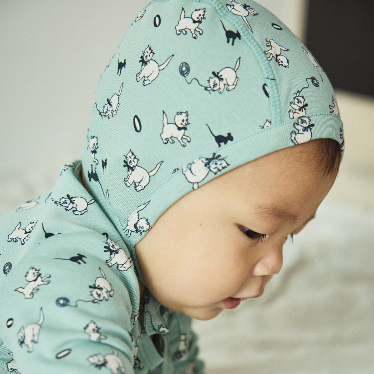 Baby Pima Bonnet in Sage Cat & Mouse by Misha & Puff