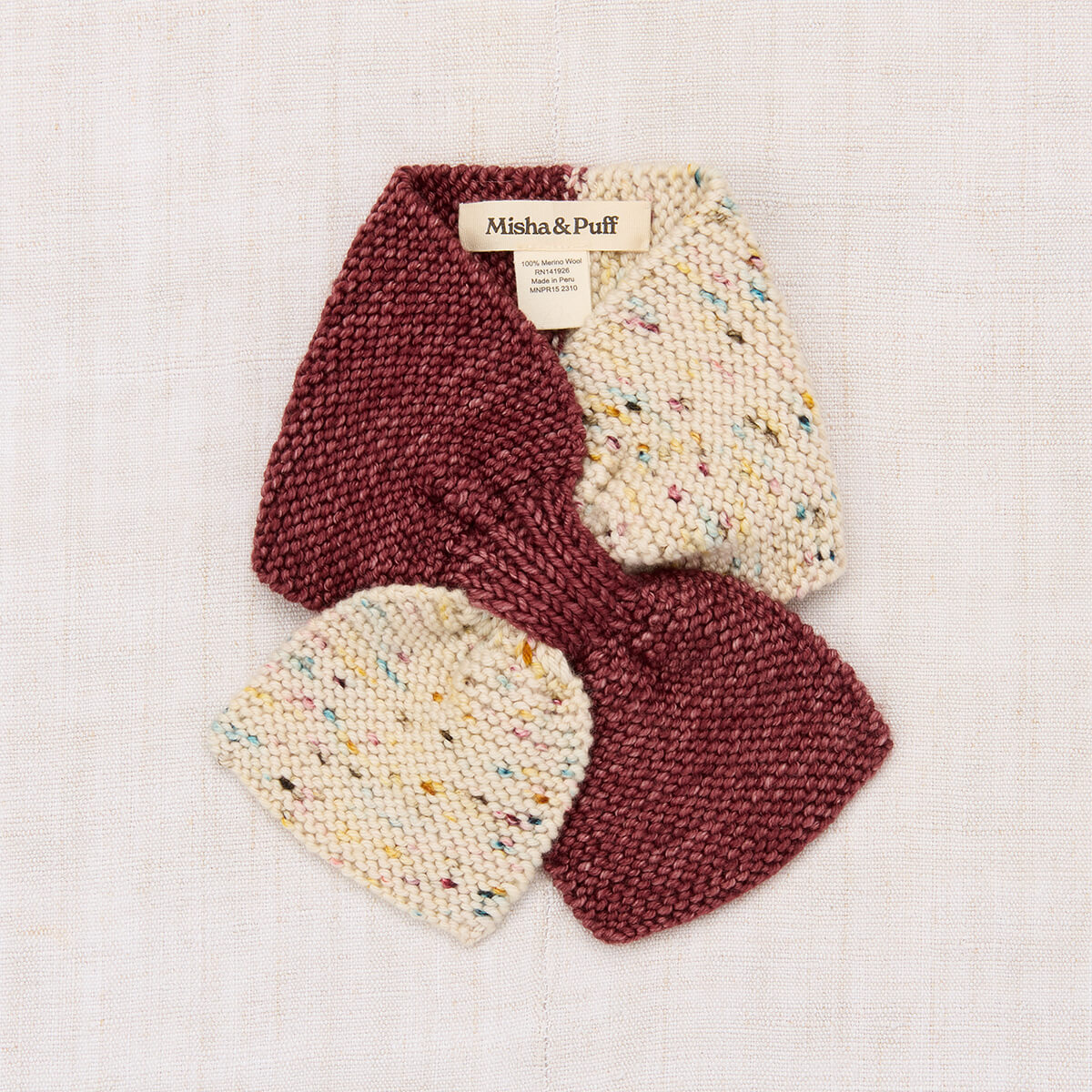 Toboggan Scarf by Misha & Puff. A hand-knit scarf in Merino wool, featuring easy pull-through closure. Can be worn over a hood to keep hoods in place and keeps heads and necks warm. The perfect complement to any outfit.