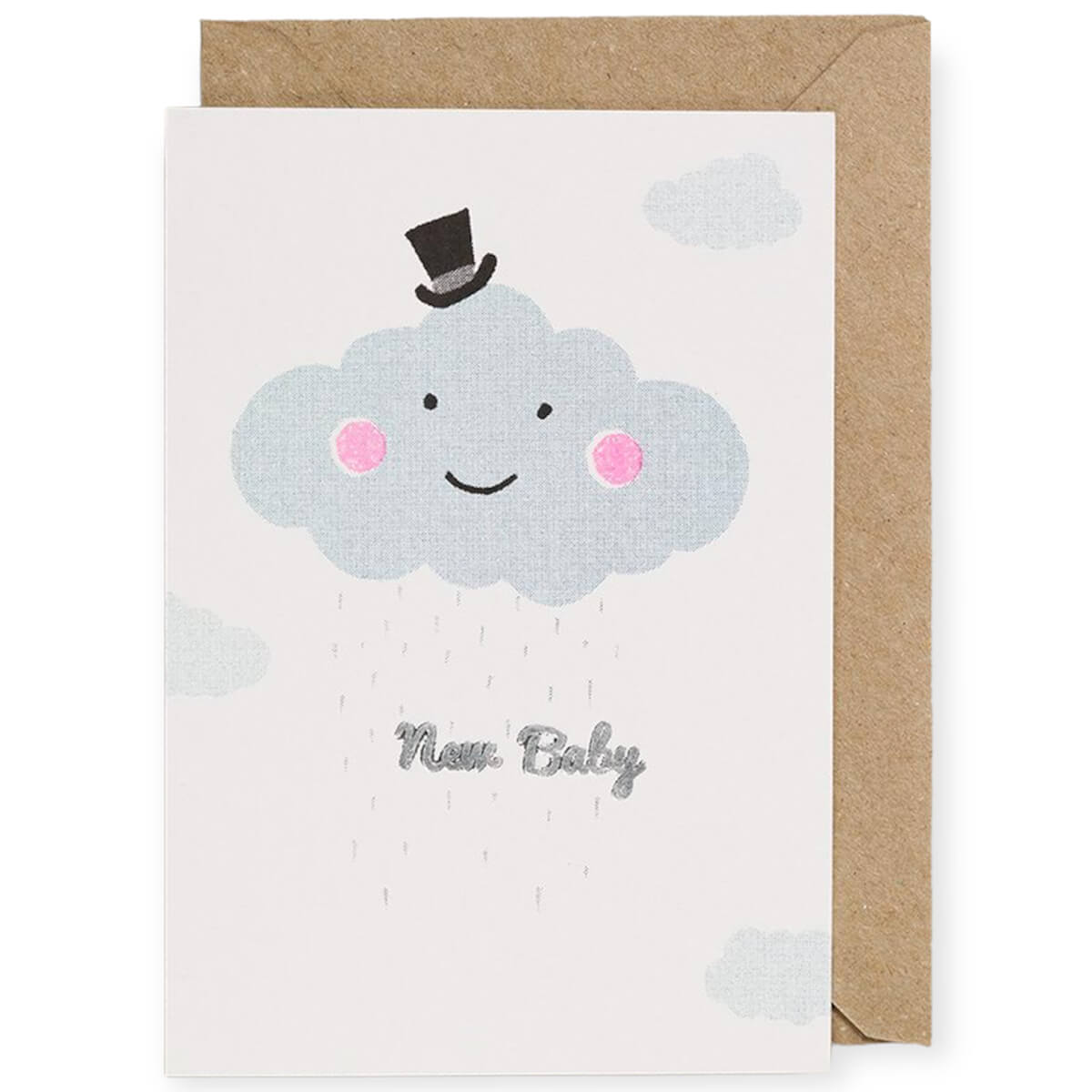 Cloud new baby greetings card by Petra Boase.  Risograph print using soy based inks on FSC certified card.  Blank inside for your own message.