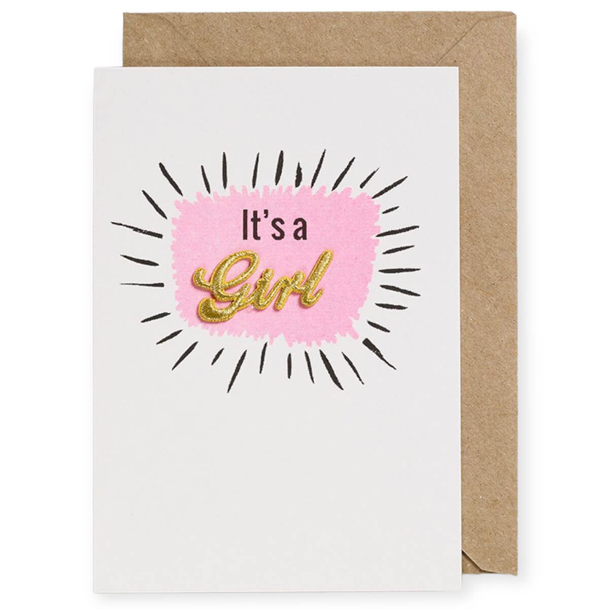 It's A Girl Embroidered Word Greetings Card by Petra Boase