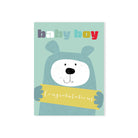 Mini Baby Boy New Baby Greetings Card by Kali Stileman Cards. A lovely little card to celebrate an exciting new arrival! This card features a sweet and smiley bear against a baby blue background.