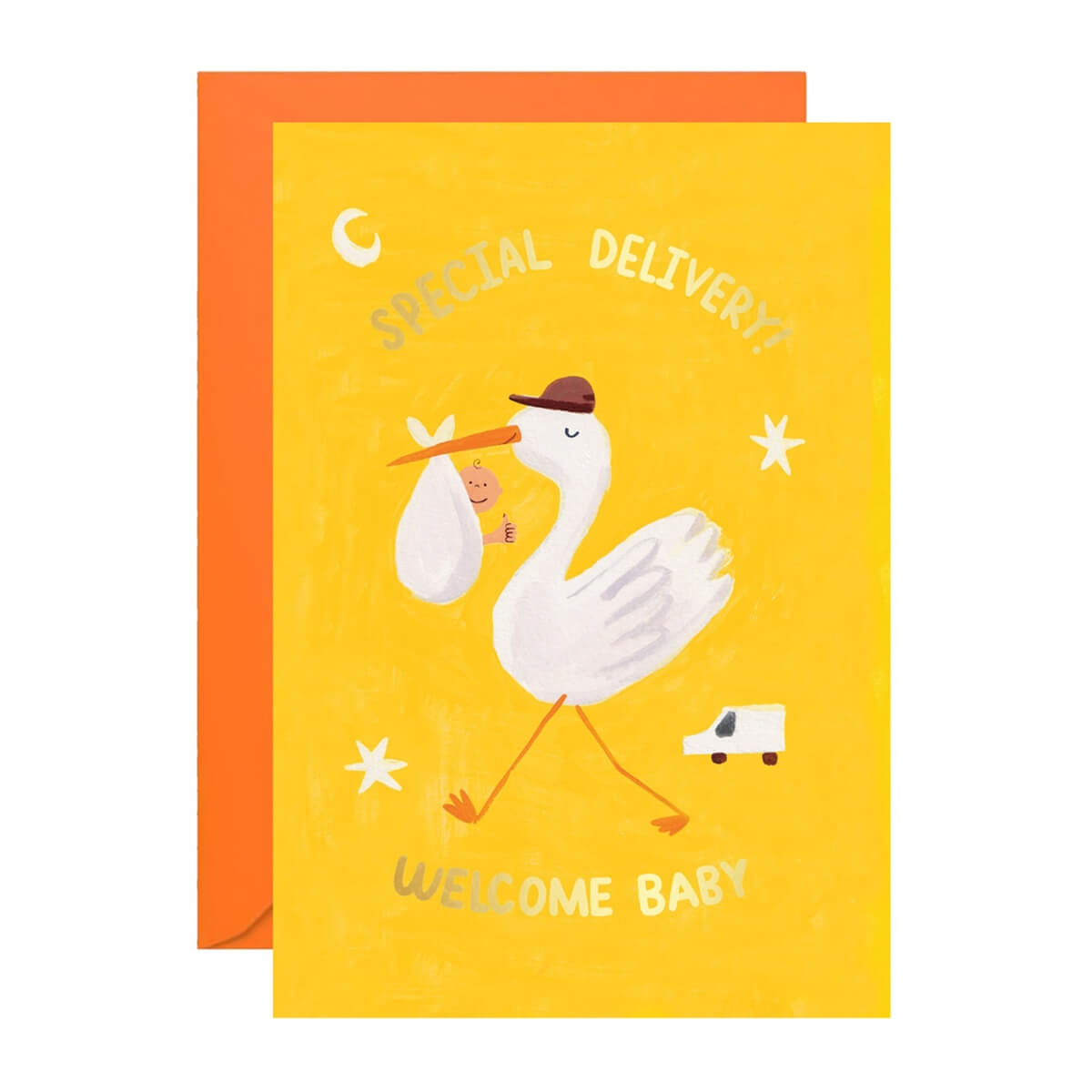 Special Delivery new baby greetings card by Ickaprint. Celebrate a new arrival with this exclusive Ickaprint design. Blank inside.