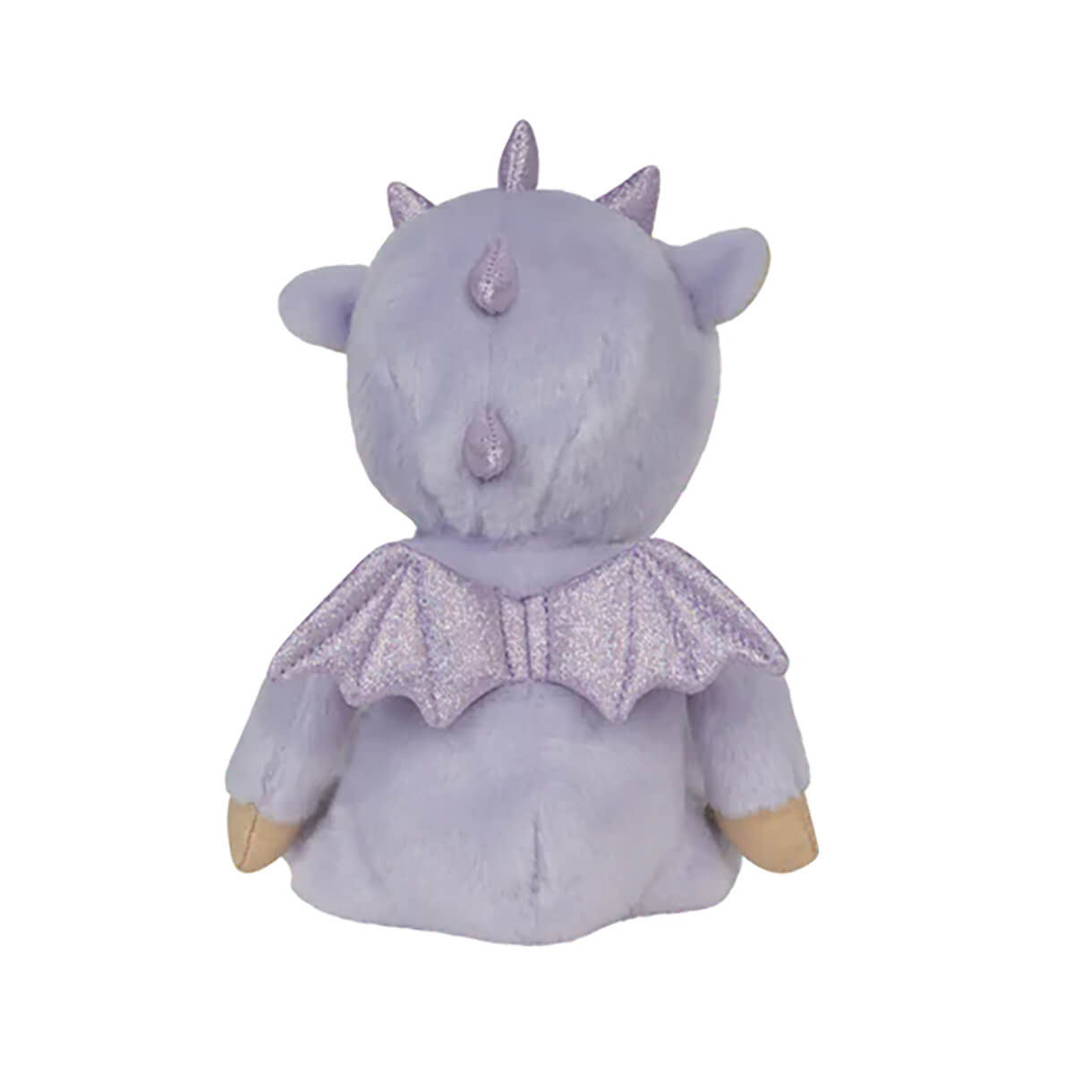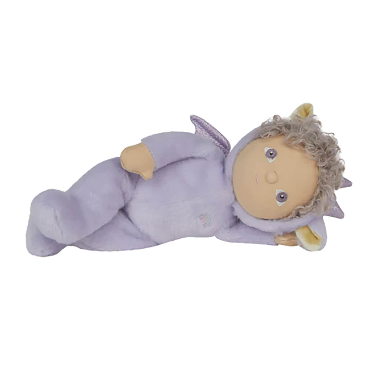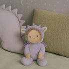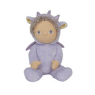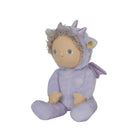 Duffy Dragon Dinky Dinkum by Olli Ella. Duffy is a lavender dragon who thinks shiny buttons are treasure. Small and a bit cheeky, Duffy likes hiding where you least expect them. With a mischievous sparkle and the softest cuddly body, Duffy brings a dash of magic to every adventure. Their dragon onesie features shimmery wings and tiny horns - perfect for little hands to explore.