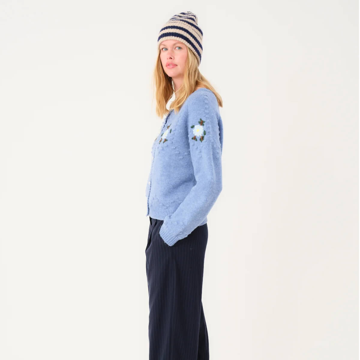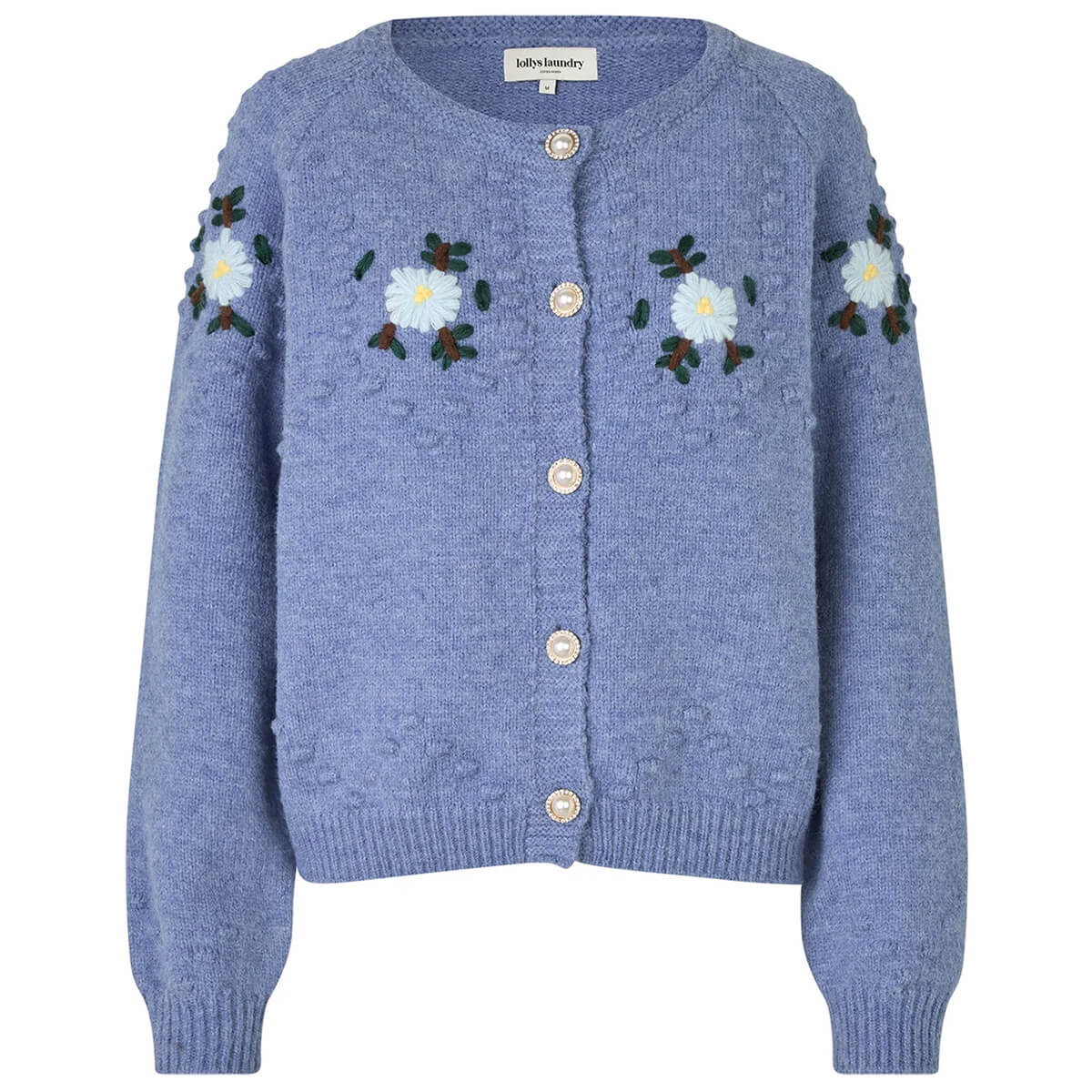Gracelynn Knit Cardigan by Lollys Laundry. The Gracelynn cardigan is a feminine and cosy knit with beautiful floral embroidery and pearl buttons. It has a romantic and timeless look with a round neckline, long sleeves, and small bobble details that add a playful, handmade feel.