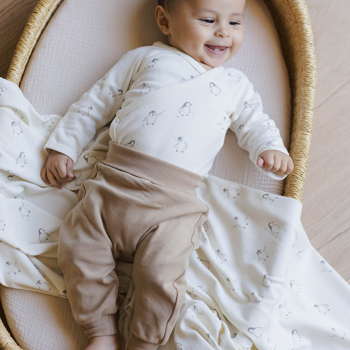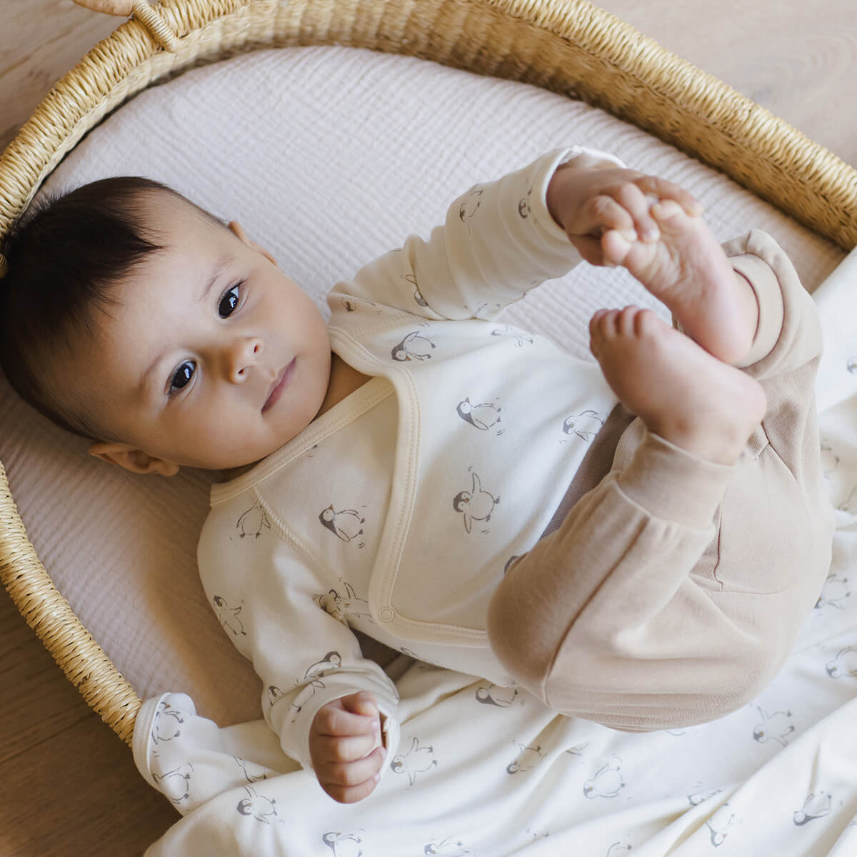 Side Snap Bodysuit and Pant Set in Penguins by Quincy Mae