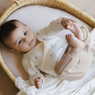 Side Snap Bodysuit and Pant Set by Quincy Mae. Made from soft, brushed jersey, this set pairs a side-snap bodysuit with matching pants featuring a roll-over ribbed waistband and ribbed cuffs. Cosy and comfortable, it’s perfect for keeping your little one snug all day.