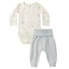 Side Snap Bodysuit and Pant Set by Quincy Mae. Made from soft, brushed jersey, this set pairs a side-snap bodysuit with matching pants featuring a roll-over ribbed waistband and ribbed cuffs. Cosy and comfortable, it’s perfect for keeping your little one snug all day.