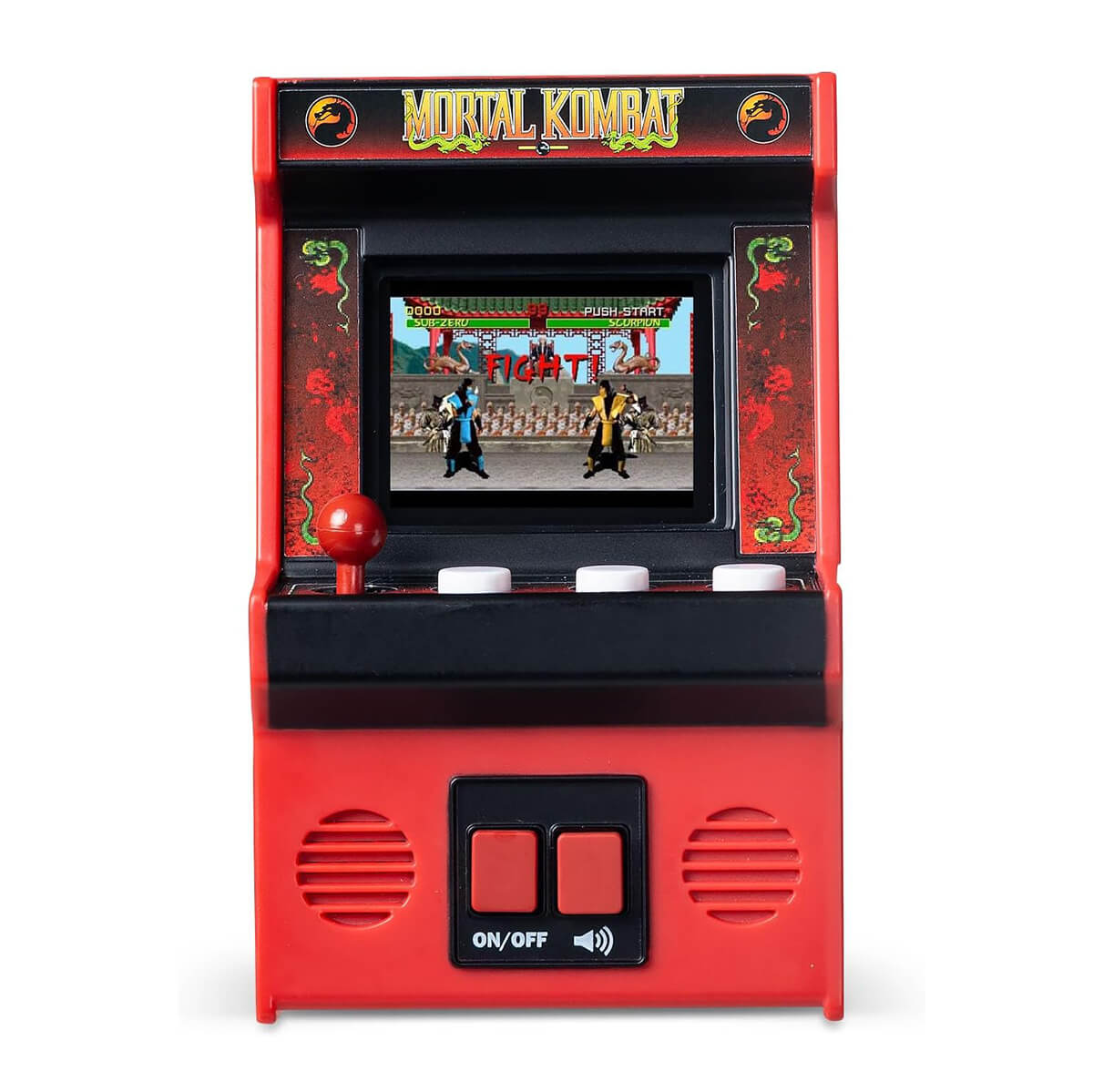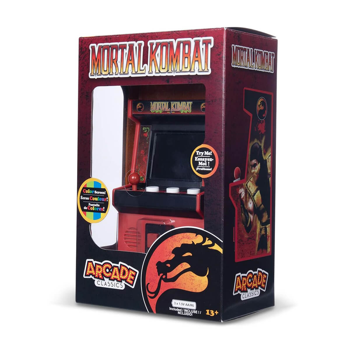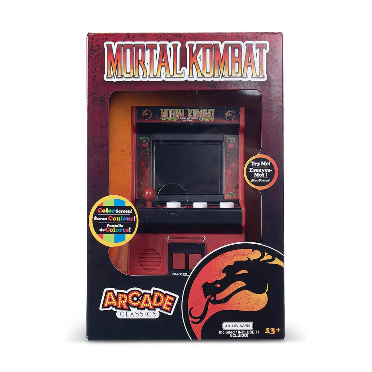 Whether you’re a longtime Kombatant or new to the fight, this mini arcade is the perfect way to experience the thrill of Mortal Kombat on the go. Comes ready to brawl with 3 “AA” batteries included—just power up and FINISH HIM! A knockout gift for gamers, collectors, and kids 8+.