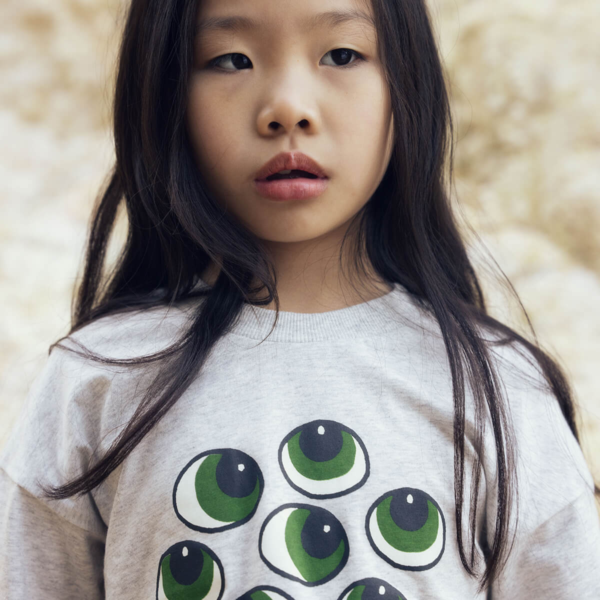 Eyes Tee by Mini Rodini. Short sleeved t shirt with eye print and Alien FC logo.