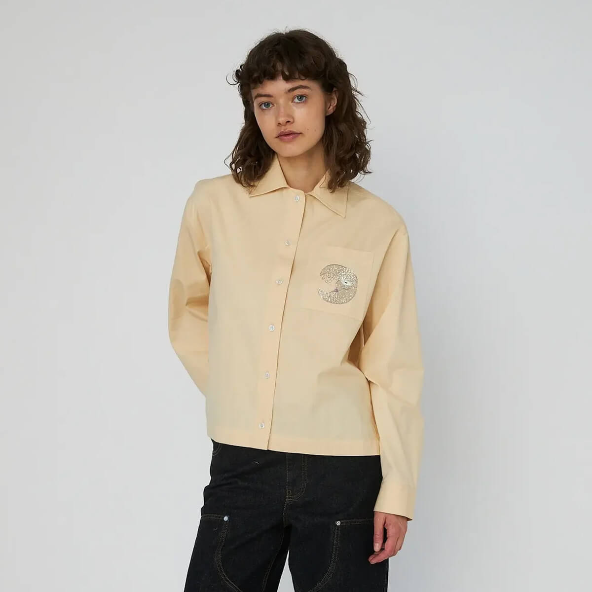 Embellished Moon Shirt by Stella Nova. Shirt with a loose fit and long sleeves with a cuff. Classic collar, button closure front and an embroidered Moon at the chest pocket.