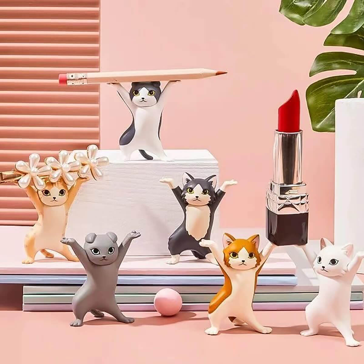 Dancing Cat Pen Holder by Yell Japan. The Dancing Cat Pen Holder series Odoru Neko from Yell World features sassy dancing kitties to hold your pen aloft! Careful balancing is required as kitty is prone to dropping - she's too busy dancing! Add a pretty pen holder to your desk, workspace or bookshelf with these sassy kitties. Collect all six and balance all your stationery! The cats can also be teamed up to hold larger things too - spectacles, ear buds, bowls...