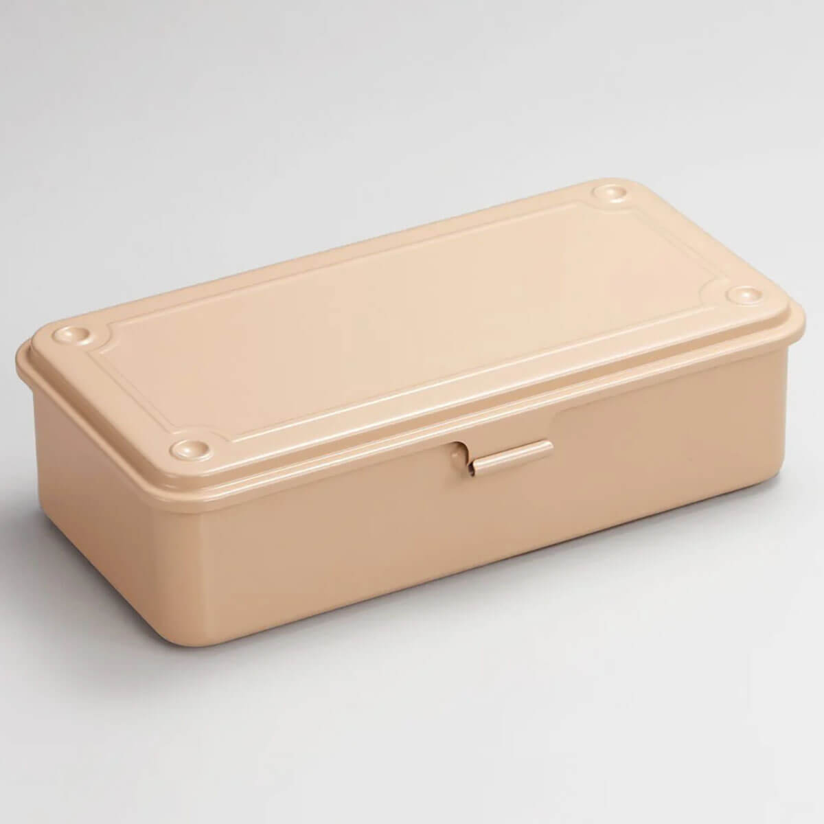 T-190 Trunk shape tool box by Toyo Steel. Made in Osaka since 1969, these tool boxes are a stylish addition to any desk. Holds small stationery items, sandwiches and little toys. Stackable with other Toyo Steel trunk shape tool boxes (T-190 and T-192) and available in a variety of colours.