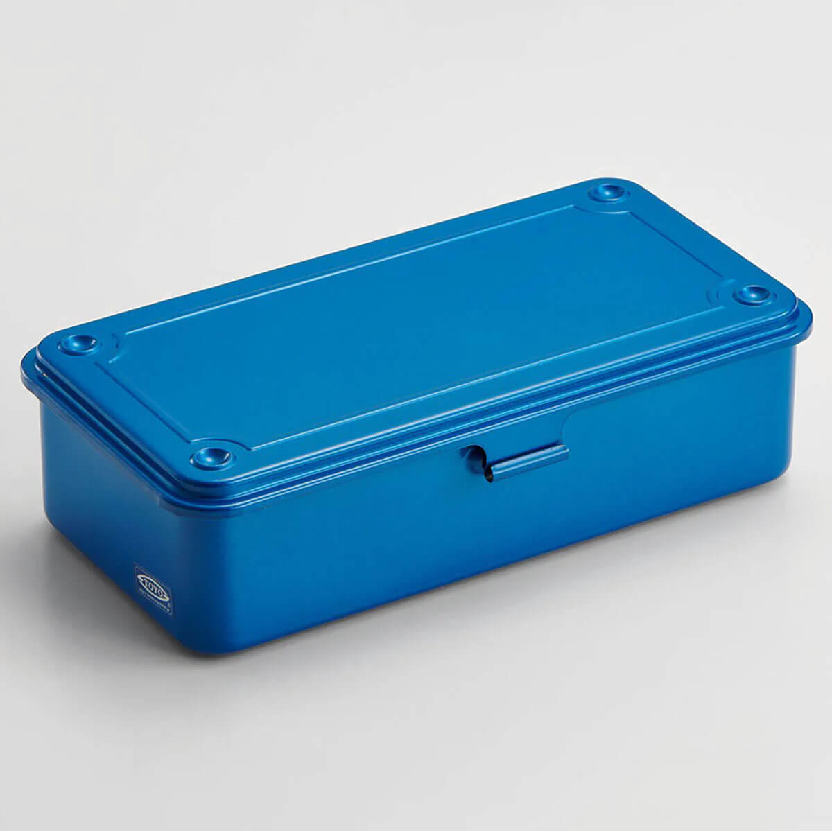T-190 Trunk shape tool box by Toyo Steel. Made in Osaka since 1969, these tool boxes are a stylish addition to any desk. Holds small stationery items, sandwiches and little toys. Stackable with other Toyo Steel trunk shape tool boxes (T-190 and T-192) and available in a variety of colours.