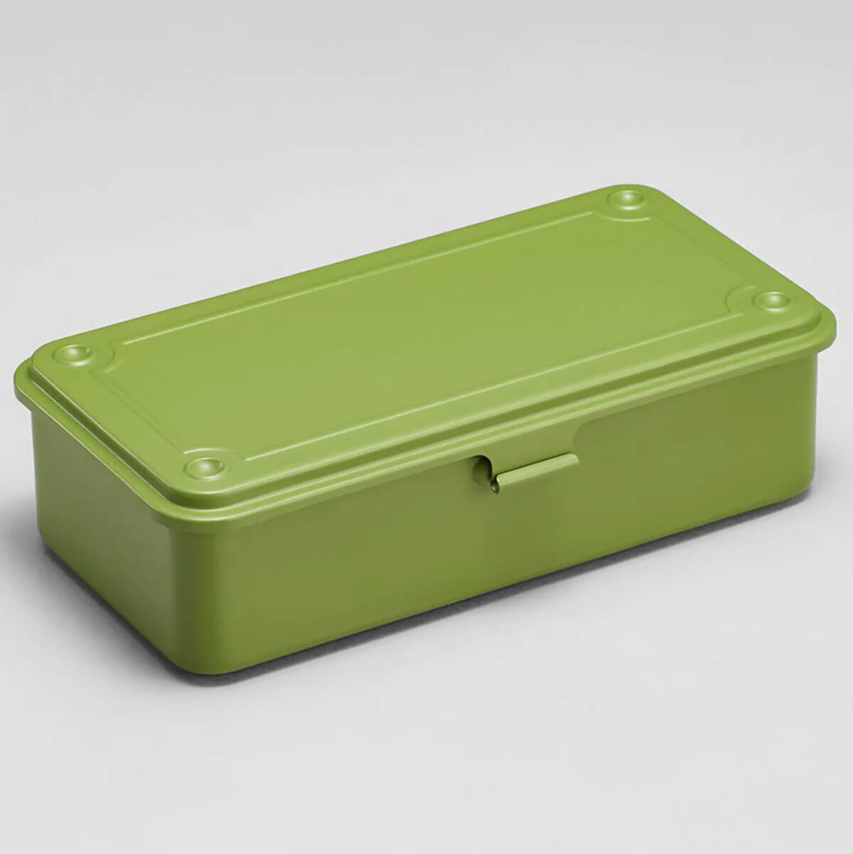 T-190 Trunk shape tool box by Toyo Steel. Made in Osaka since 1969, these tool boxes are a stylish addition to any desk. Holds small stationery items, sandwiches and little toys. Stackable with other Toyo Steel trunk shape tool boxes (T-190 and T-192) and available in a variety of colours.