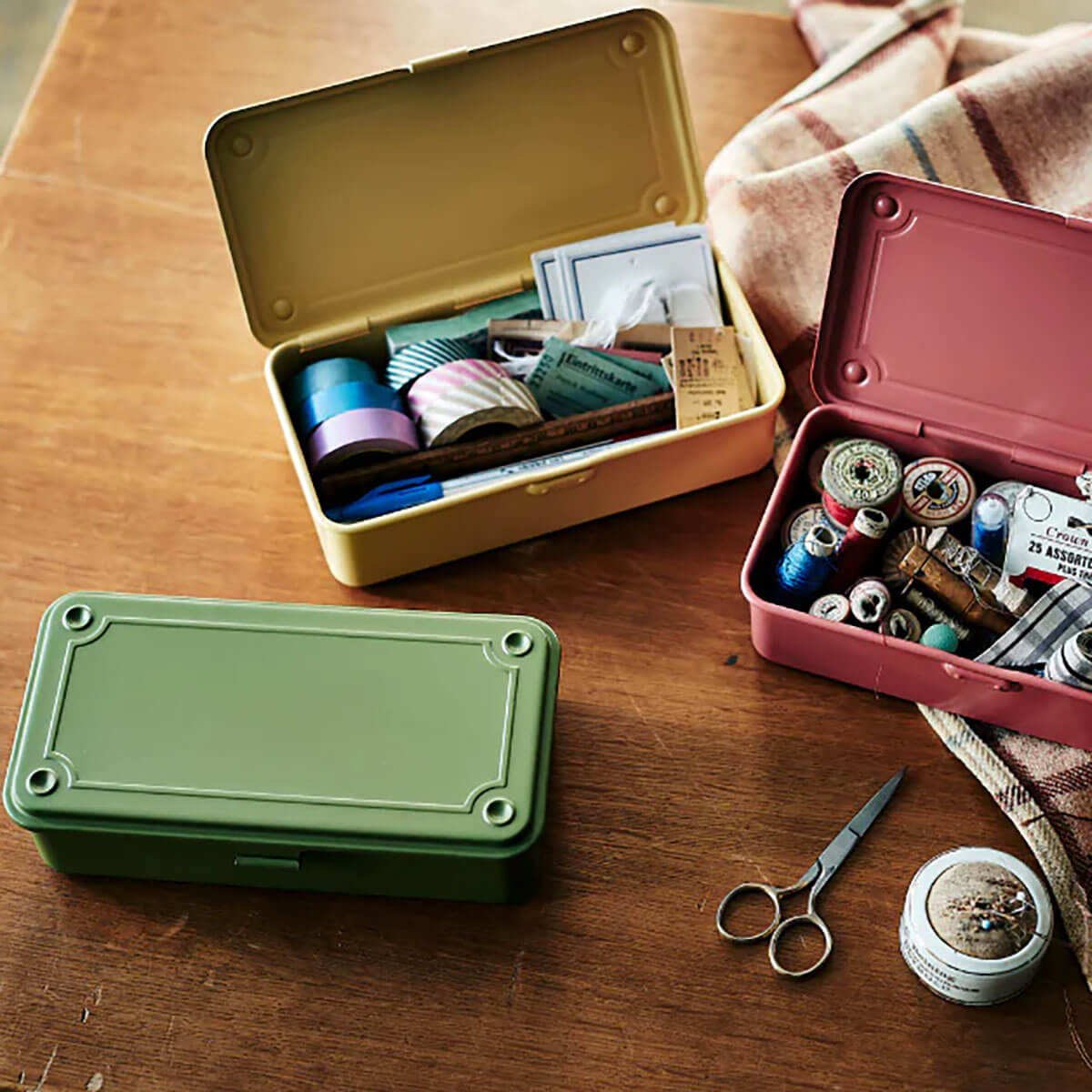 Established in 1969, Toyo Steel was the first to develop a deep drawing technology, allowing them to create toolboxes from a single sheet of steel. This technique, which involves shaping the sheets with metal molds, results in a seamless toolbox that is robust and hardwearing. Widely acclaimed for its simple-yet-refined design, the Toyo toolbox has won both the Good Design and Long Life Design awards. Initially created for industrial professionals, today the toolboxes are used in many different ways, from organising everyday gadgets to storing art supplies.