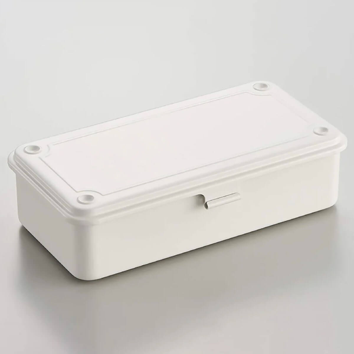 T-190 Trunk shape tool box by Toyo Steel. Made in Osaka since 1969, these tool boxes are a stylish addition to any desk. Holds small stationery items, sandwiches and little toys. Stackable with other Toyo Steel trunk shape tool boxes (T-190 and T-192) and available in a variety of colours.