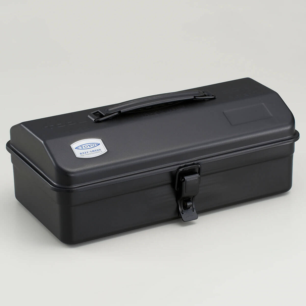 Y-280 Camber top tool box by Toyo Steel. Made in Osaka since 1969, these award winning Japanese boxes are the premium standard for metal tool boxes. Pressed from a single steel sheet using metal moulds, each box is seamless and hardwearing. The elegent camber round top allows for extra storage compare to flat top boxes, with clip fasten closure and smooth round handle. Originally crafted for industry professionals, this lightweight storage box is perfect for storing anything from stationery to sandwiches.