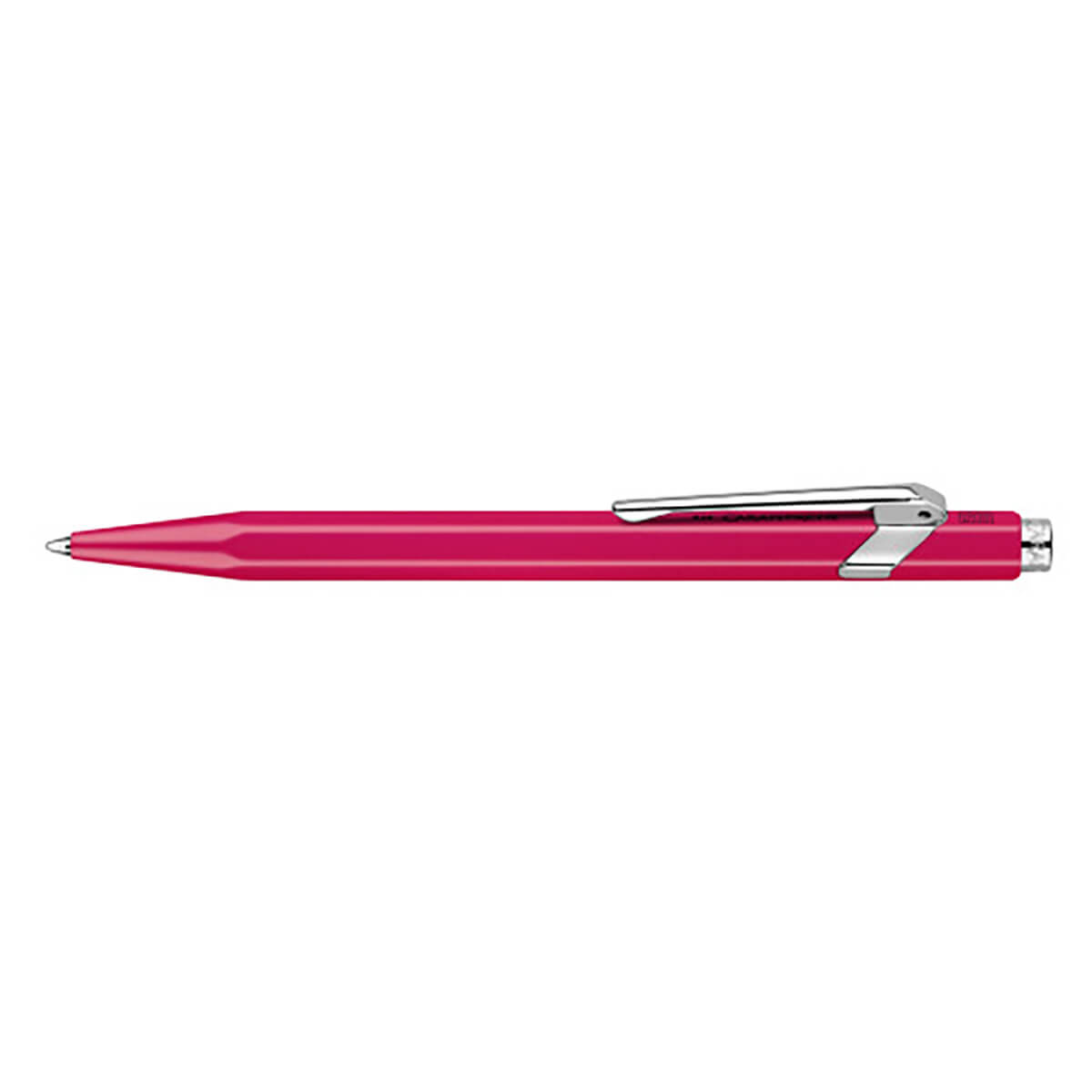 849 Ballpoint Pen in Pink Fluo by Caran d'Ache. Classic but stylish ballpoint pen with powder-coated aluminium body and Caran d'Ache's signature hexagonal shape. Push button and handy steel pocket clip.