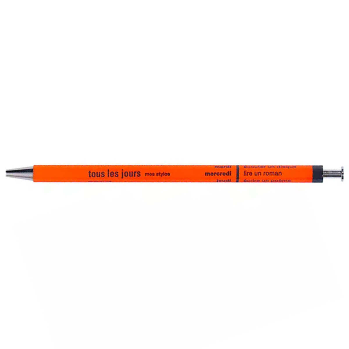 Days ballpoint pen by Marks Inc. These fun and delicate Japanese ballpoint pens are a dream to write with. With their hexagonal wooden body and ultra fine nib with black ink, the Days pens are perfect for drawing, sketching and calligraphy. Ballpoint pen with a hexagonal wooden body featuring French phrases with ideas on how to spend every day of the week.
