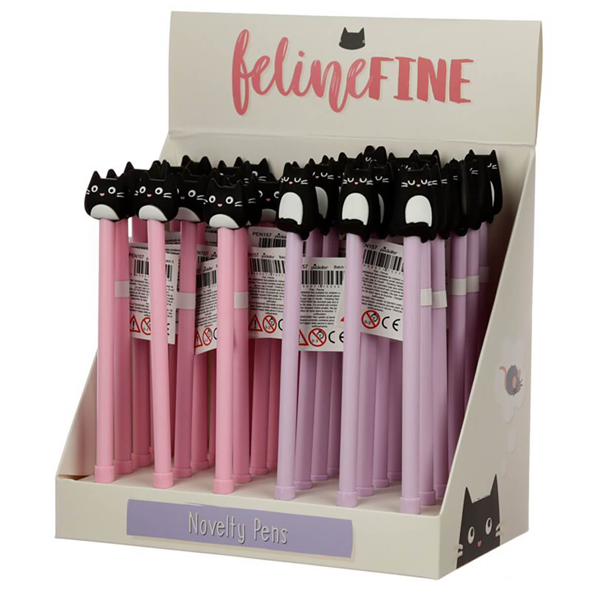 Feline Fine Cat Fine Tip Pen by Puckator. Novelty pen available in two designs with silicone black and white cat toppers. Fine tip nib with black ink.