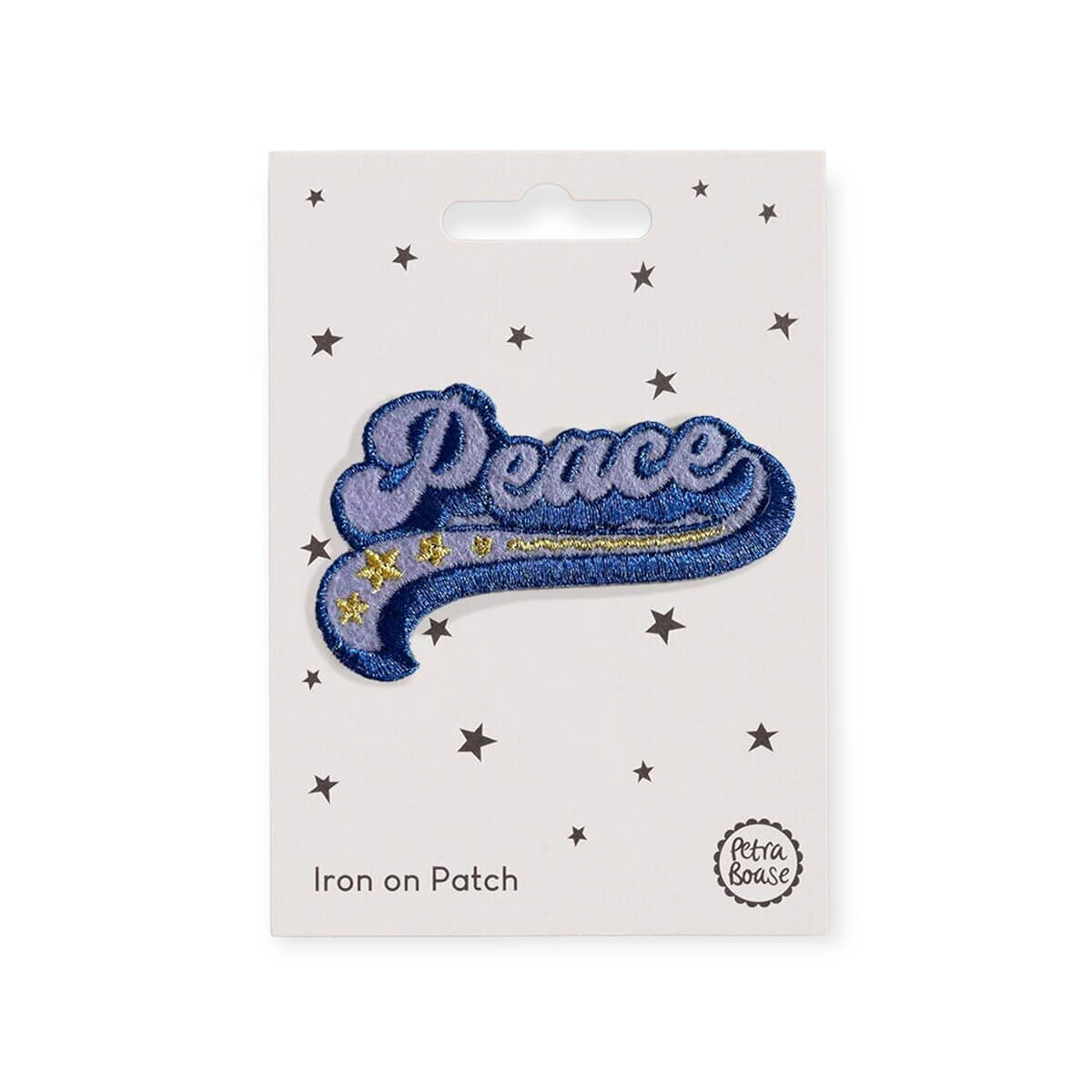 Peace iron on patch by Petra Boase. Richly embroidered colourful patch, with an iron-on backing so can be removed from the card and ironed on to a favourite t-shirt, rucksack or whatever you like!