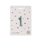Rainbow Number 1 iron on patch by Petra Boase. Richly embroidered colourful rainbow number patch, with an iron-on backing so can be removed from the card and ironed on to a favourite t-shirt, rucksack or whatever you like!
