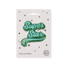 Super Star iron on patch by Petra Boase. Richly embroidered colourful patch, with an iron-on backing so can be removed from the card and ironed on to a favourite t-shirt, rucksack or whatever you like! The patch is a stylish turquoise, with green and gold embroidered detailing.