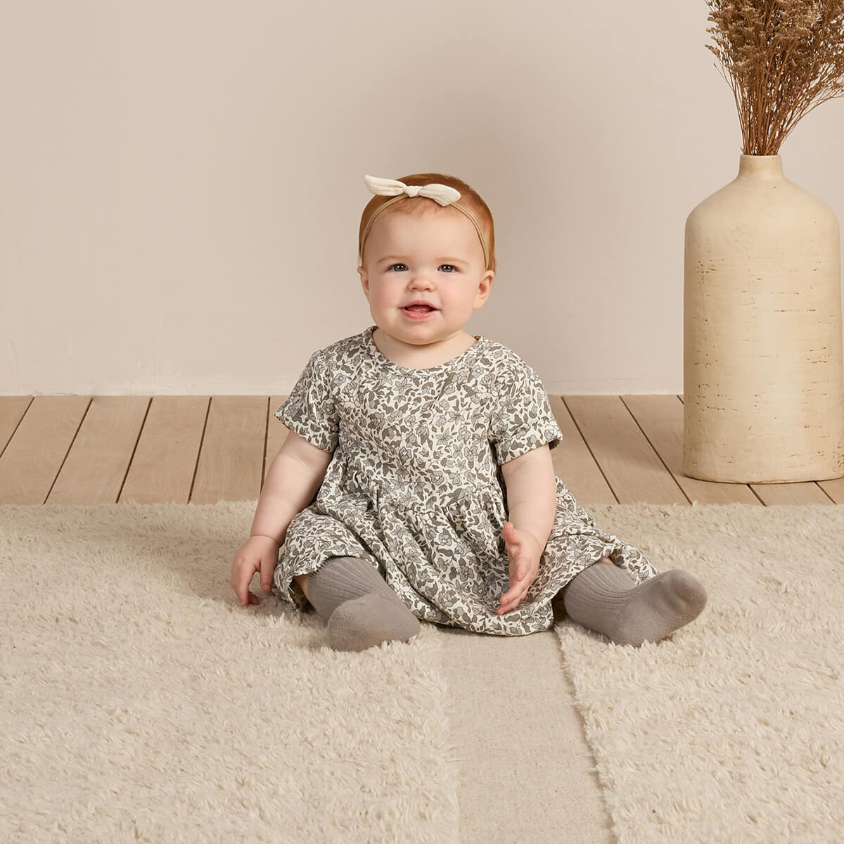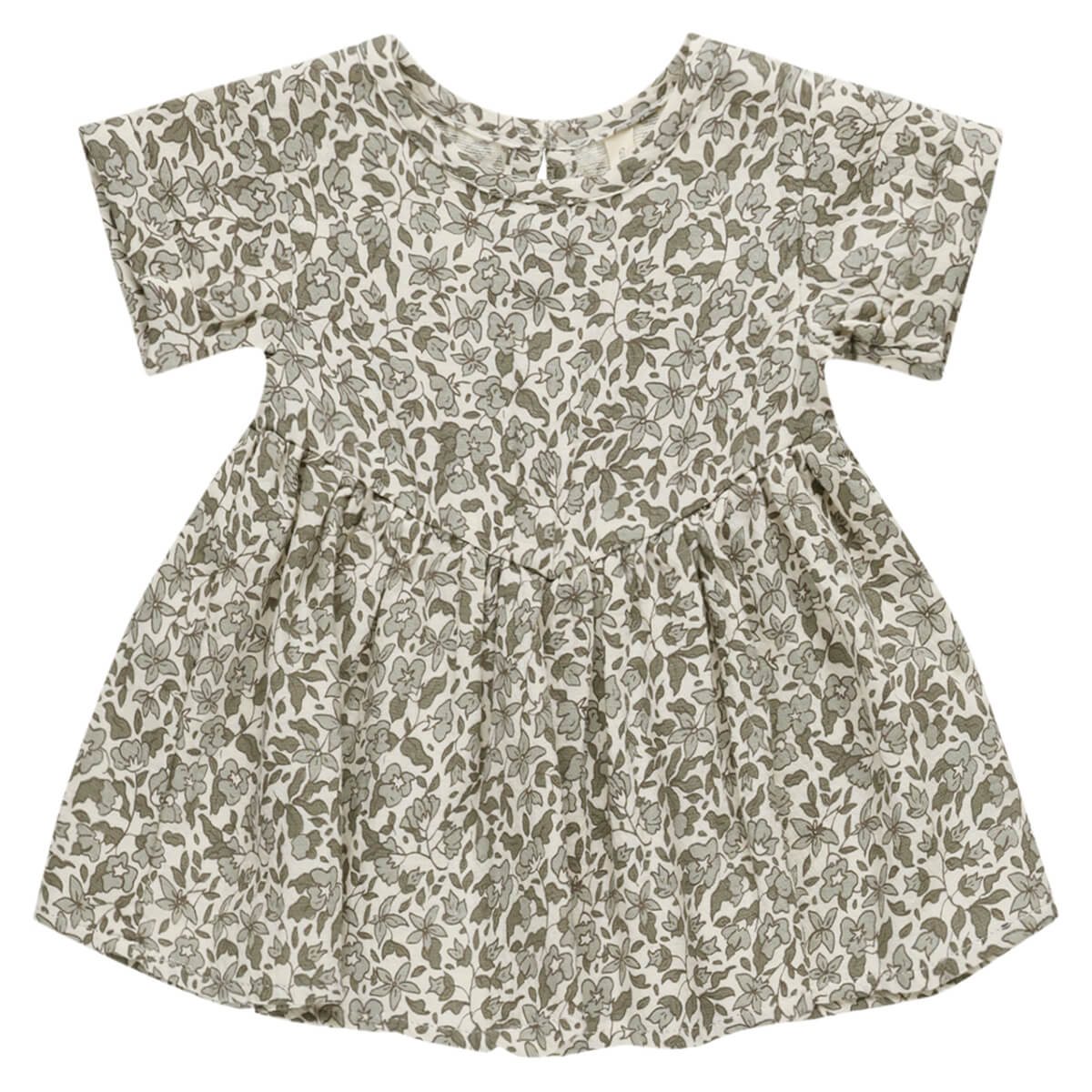 Brielle dress by Quincy Mae. Featuring a full skirt, a sweet V-shape waistline, and a keyhole in the back to make it easy to put on. All sizes include coordinating bloomers.