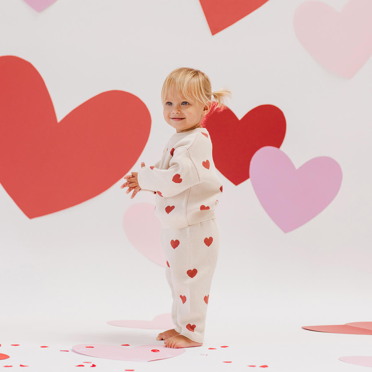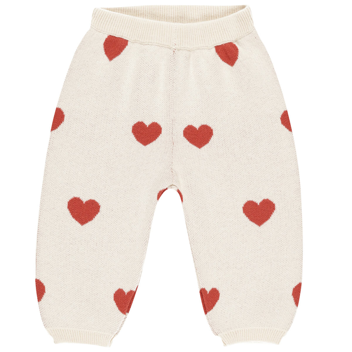 Heart Knit Pants by Quincy Mae. Soft and cosy knitted baby trousers with an all over heart pattern.