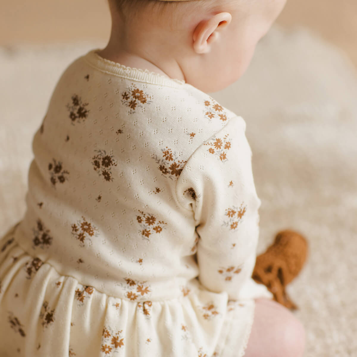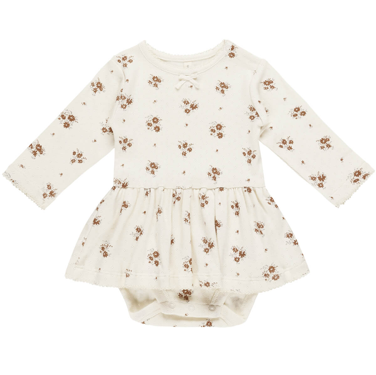 Pointelle Skirted Bodysuit in Autumn Flora by Quincy Mae - Last One In Stock - 3-6 Months