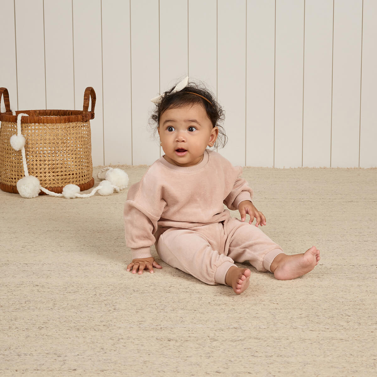 Velour Relaxed Sweatpant in Blush by Quincy Mae