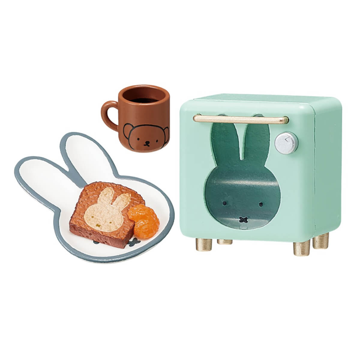 Miffy Natural Kitchen Blind box by Re-Ment Japan. The Miffy Natural Kitchen series from Rement features a charming miniature set of Miffy kitchen decor and dishes. Collect all eight for the complete kitchen scene, with a work table, oven, mixer, spice cabinet, frying pan, stewpot, dripper and toaster.