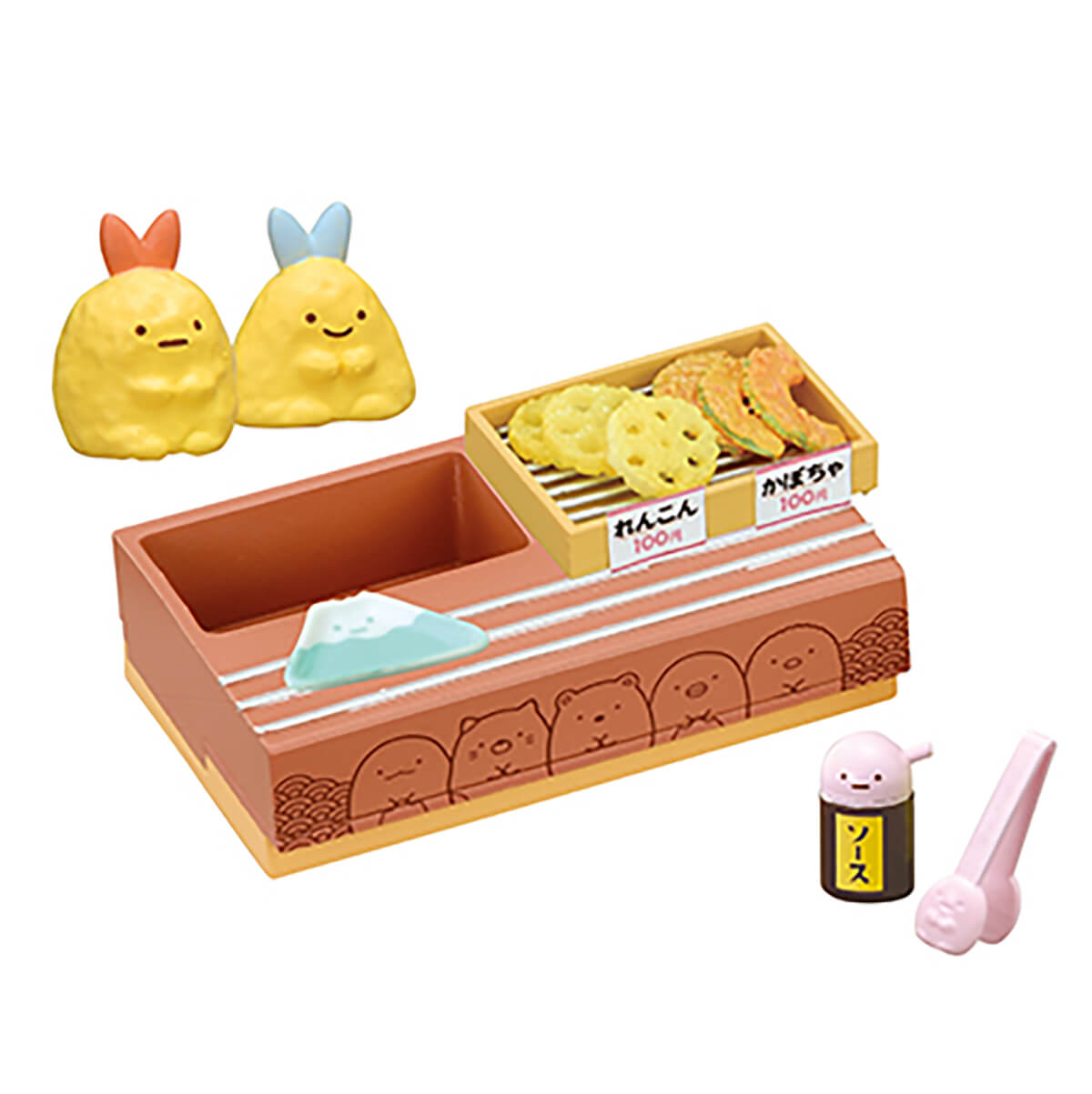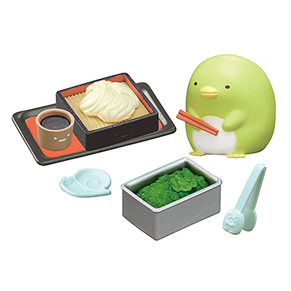 Eight Sumikko Gurashi-themed udon restaurant scenes / food sets to collect: Udon Restaurant, Boil, Kamaage Udon, Tempura, Rice Ball, Topping, Zaru Udon and Kitsune Udon.